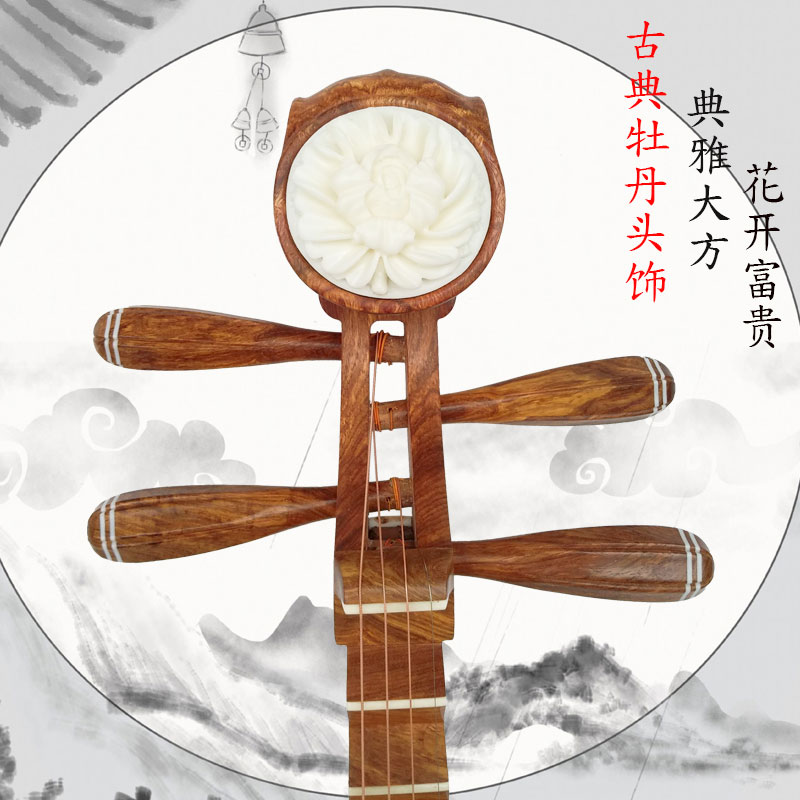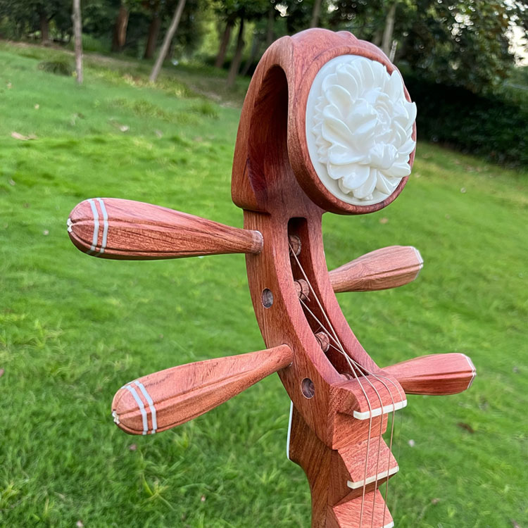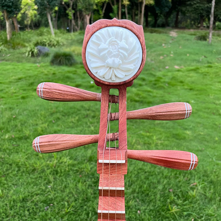 乐海 琵琶乐器大果紫檀木材质原木抛光木轴木相花开富贵头饰9119