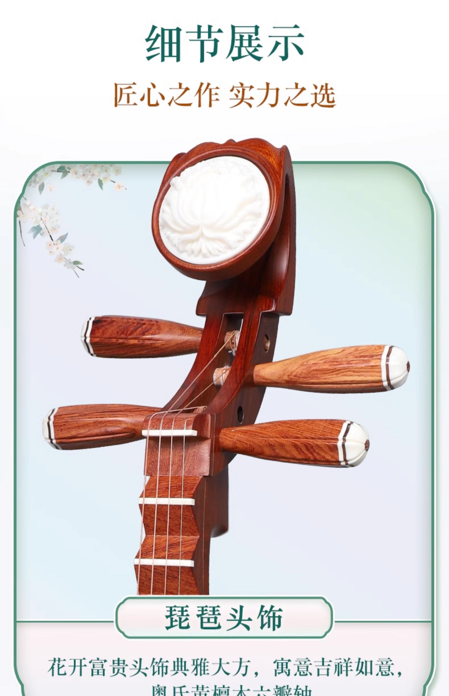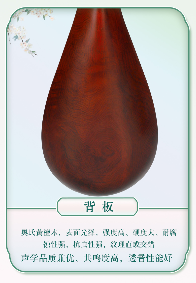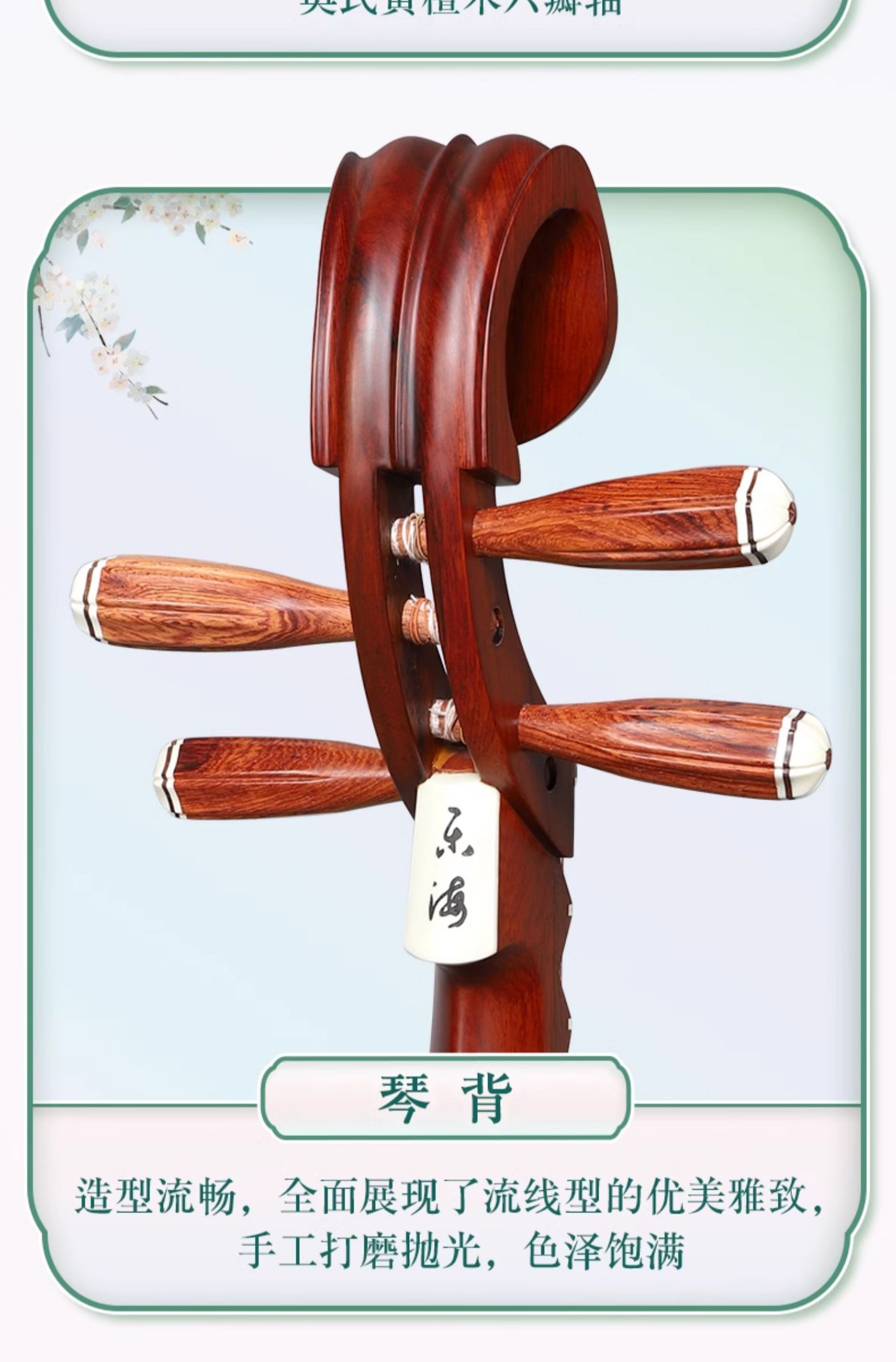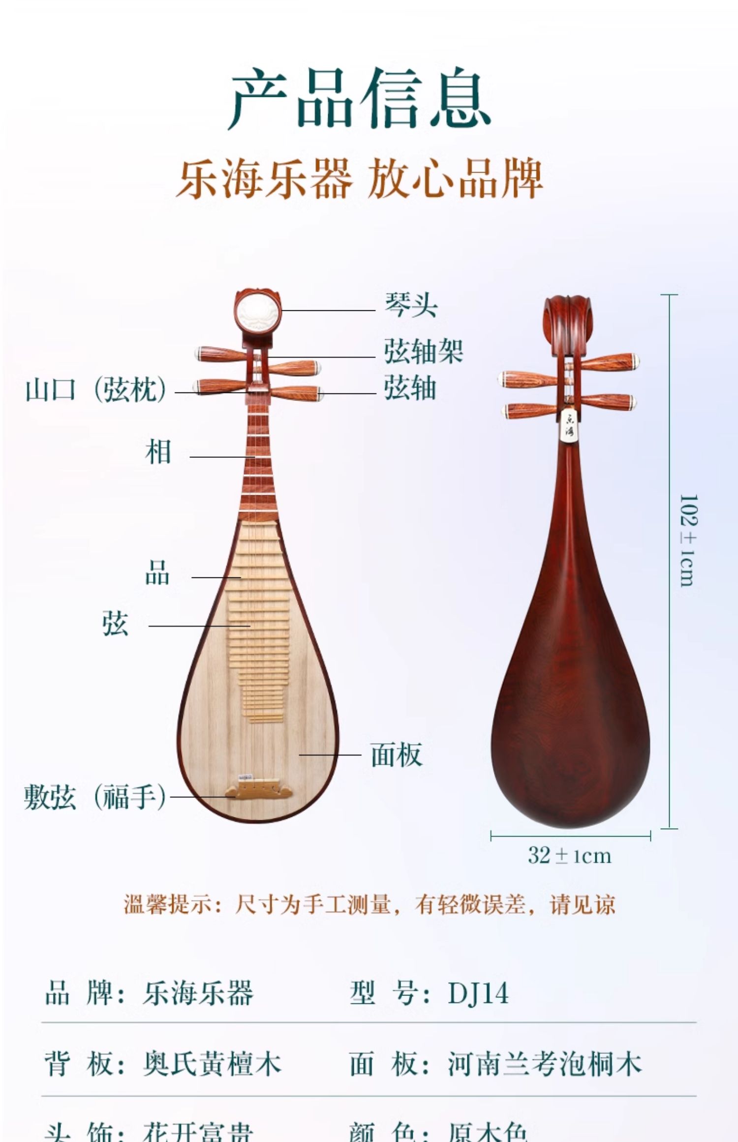 商品名称:乐海 琵琶乐器专业考级奥氏黄檀木材质原木色木相酸枝木琵琶DJ14