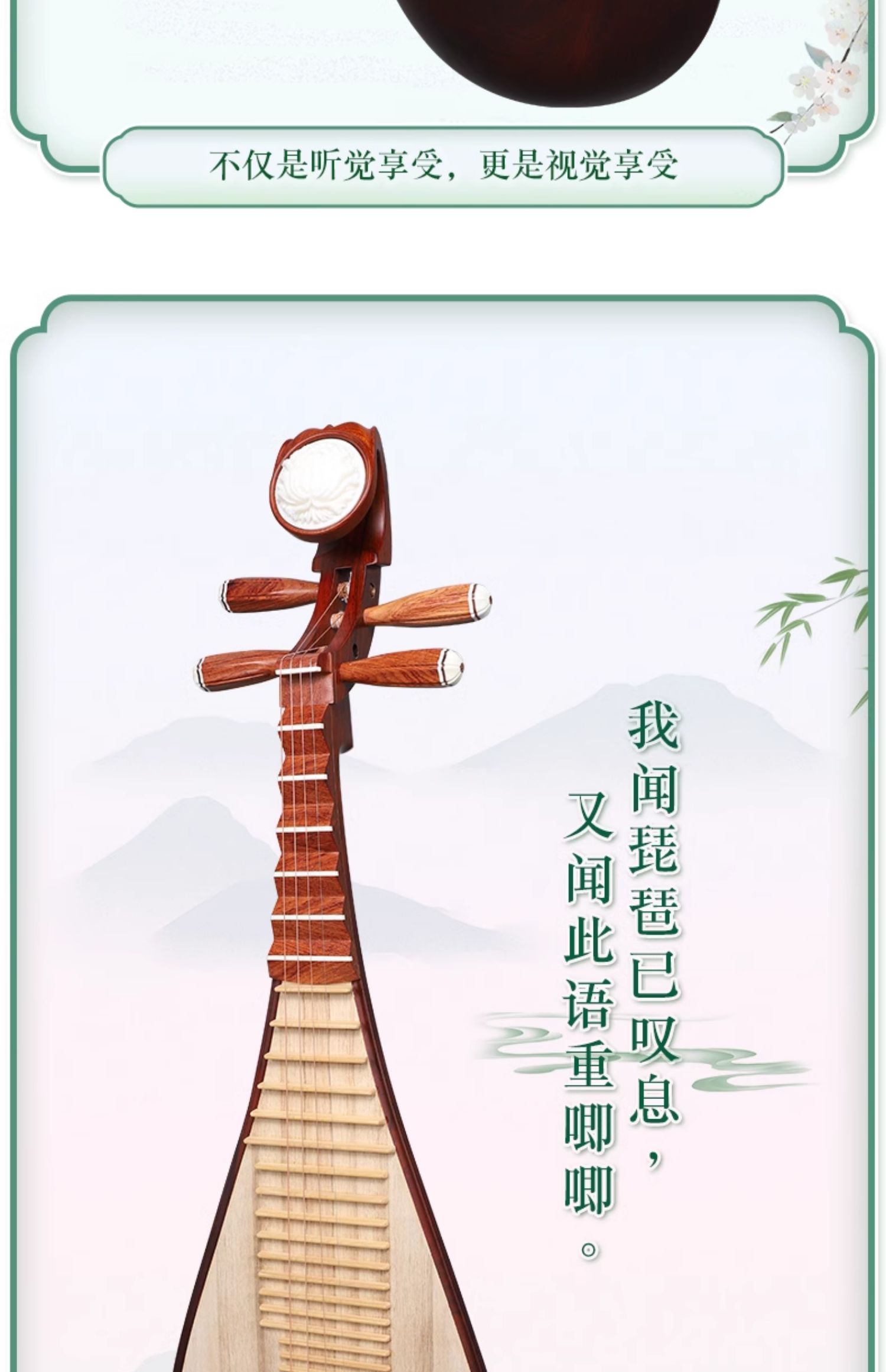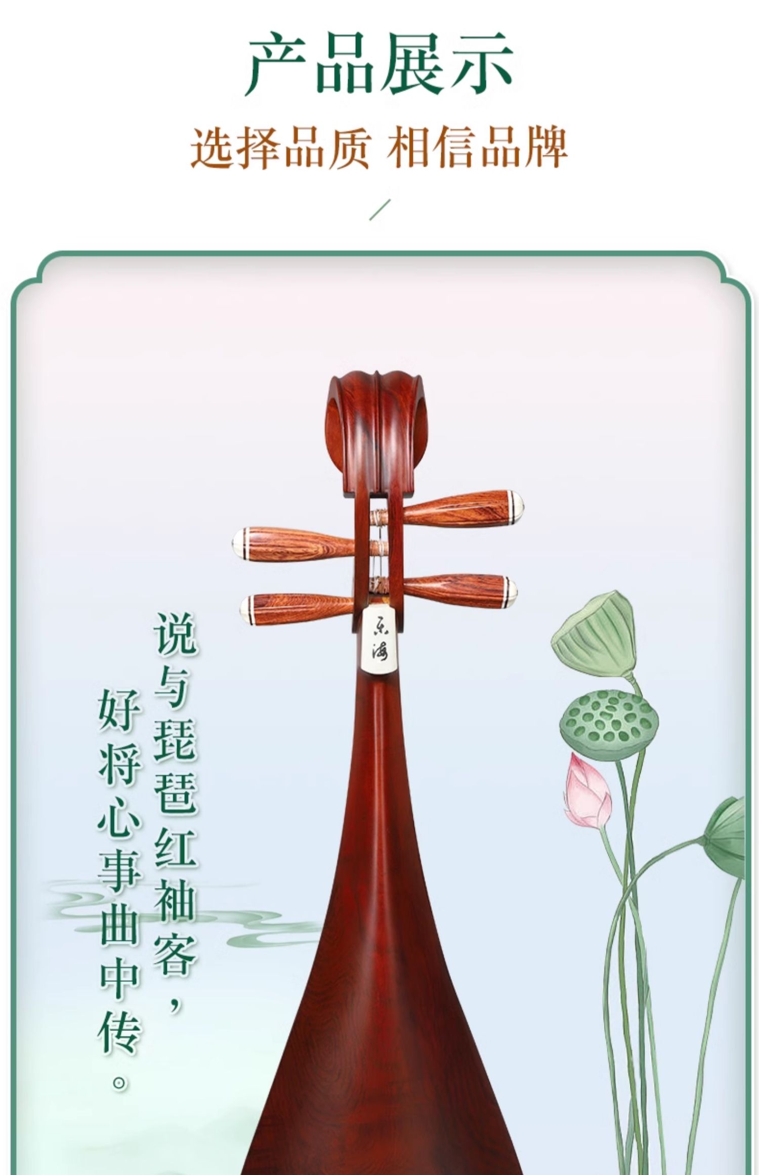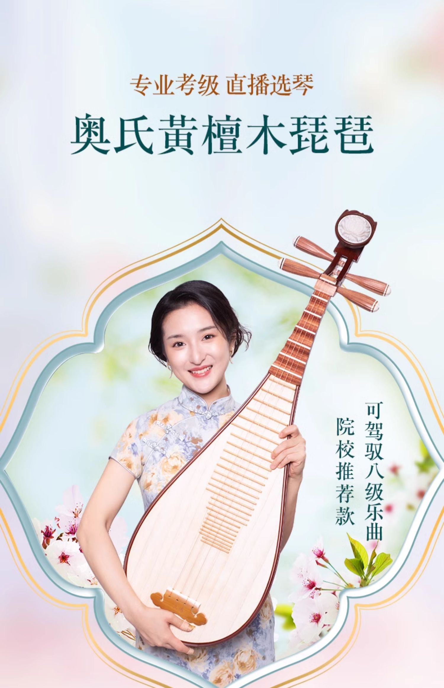 商品名称:乐海 琵琶乐器专业考级奥氏黄檀木材质原木色木相酸枝木琵琶DJ14