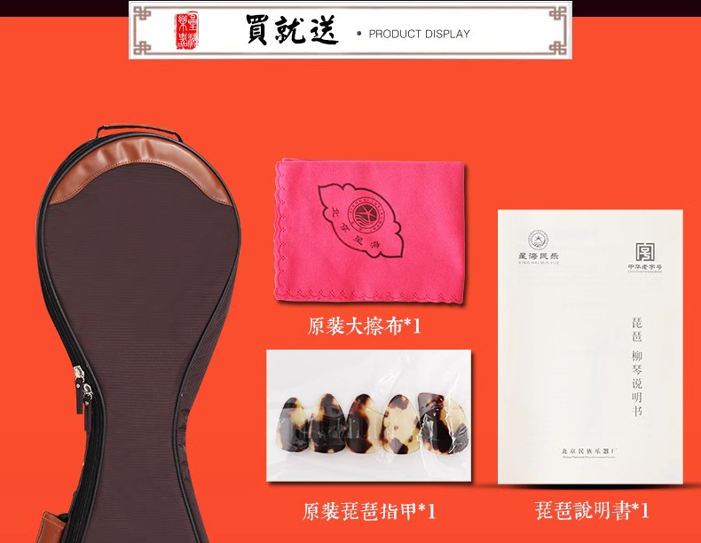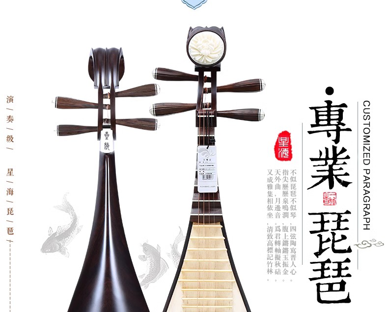 商品名称:北京星海 8916黑檀琵琶 演奏黑紫檀琵琶乐器 入门初学送配件
