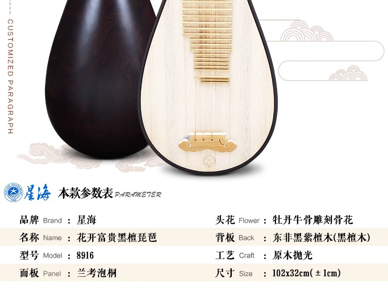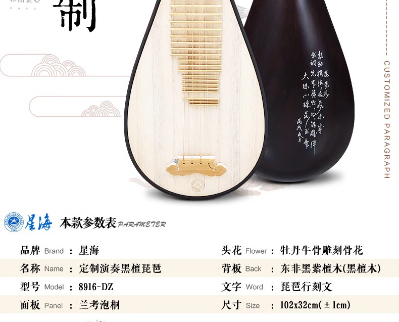 星海8916DZ定制款黑檀琵琶+送豪华礼包