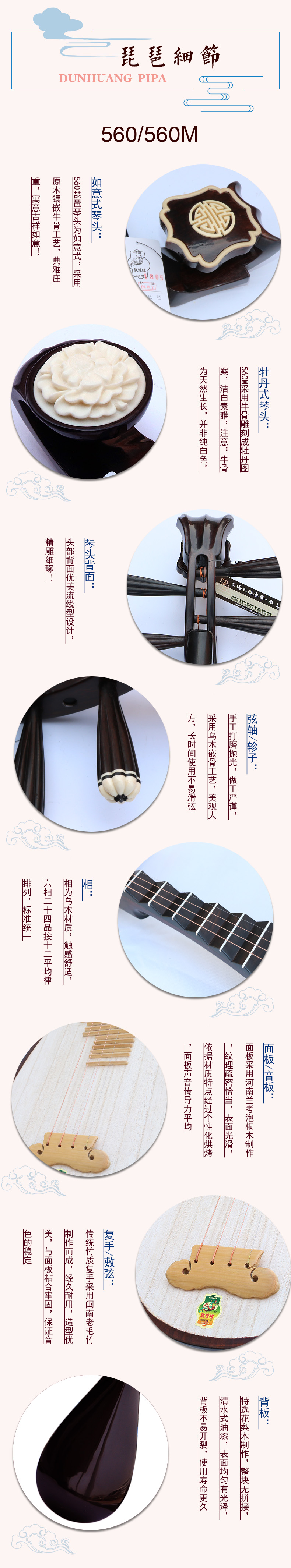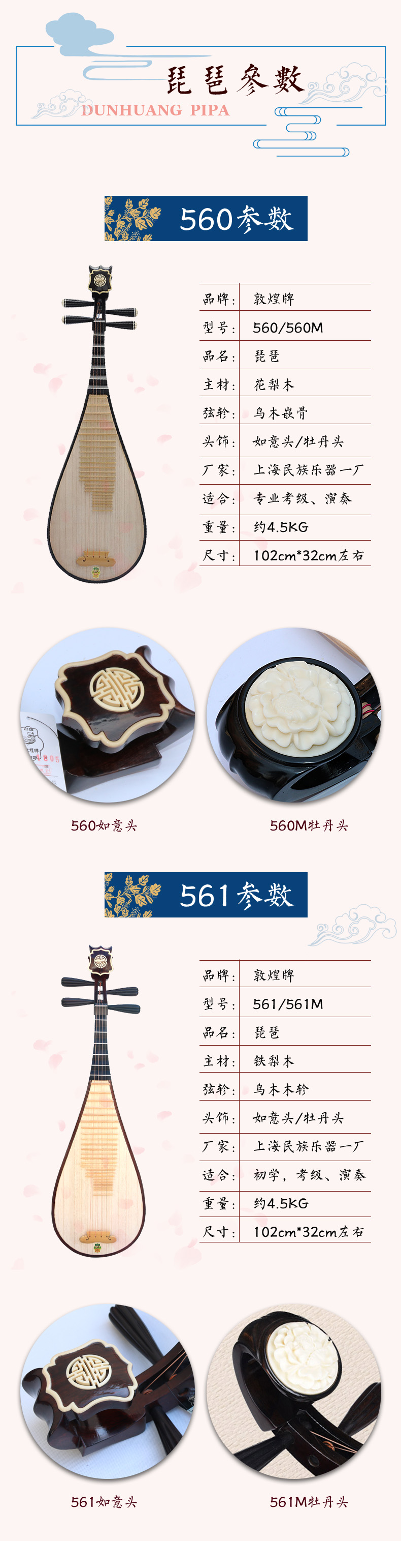商品名称:上海敦煌牌560/560M琵琶如意牡丹花梨木专业考级演奏琴民族乐器厂