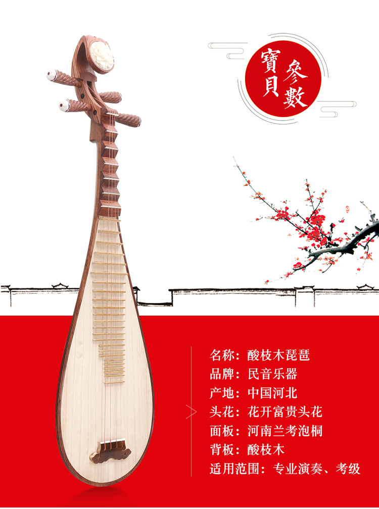 商品名称:精品专业演出酸枝木抛光琵琶乐器成人演出 考级 初学琵琶直销