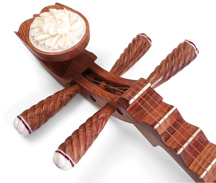 乐海 琵琶乐器大果紫檀木材质原木抛光木轴木相花开富贵头饰9119