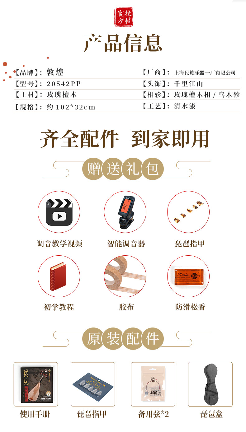 商品名称:敦煌牌20542PP千里江山玫瑰檀木演奏艺考级琵琶上海民族乐器一厂