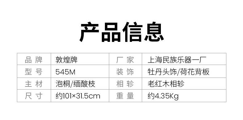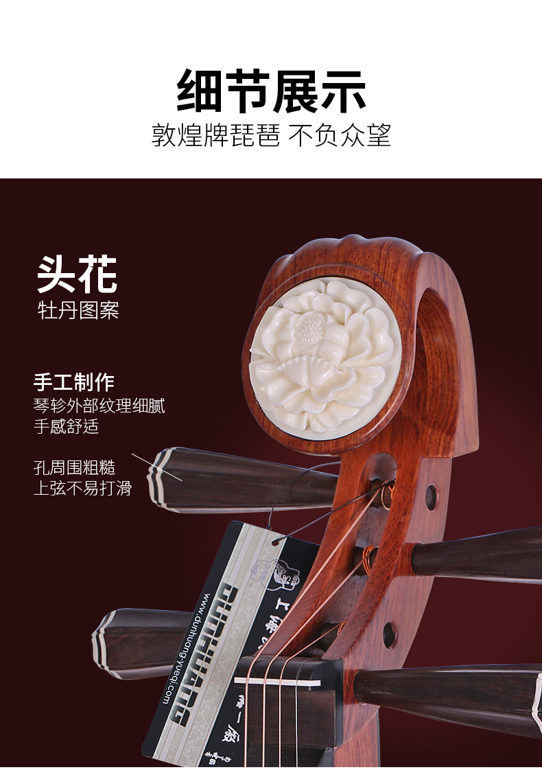 商品名称:敦煌琵琶545M琵琶缅酸枝荷花图老红木相轸牡丹如意敦煌牌545琵琶