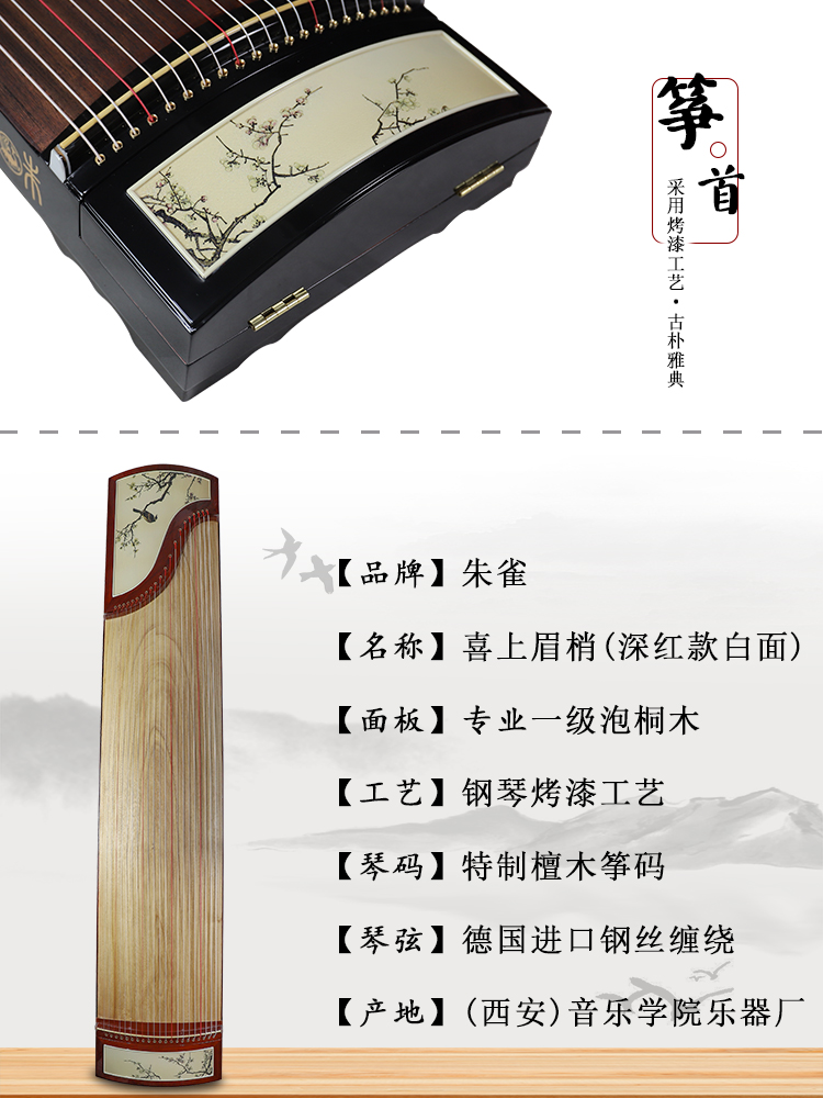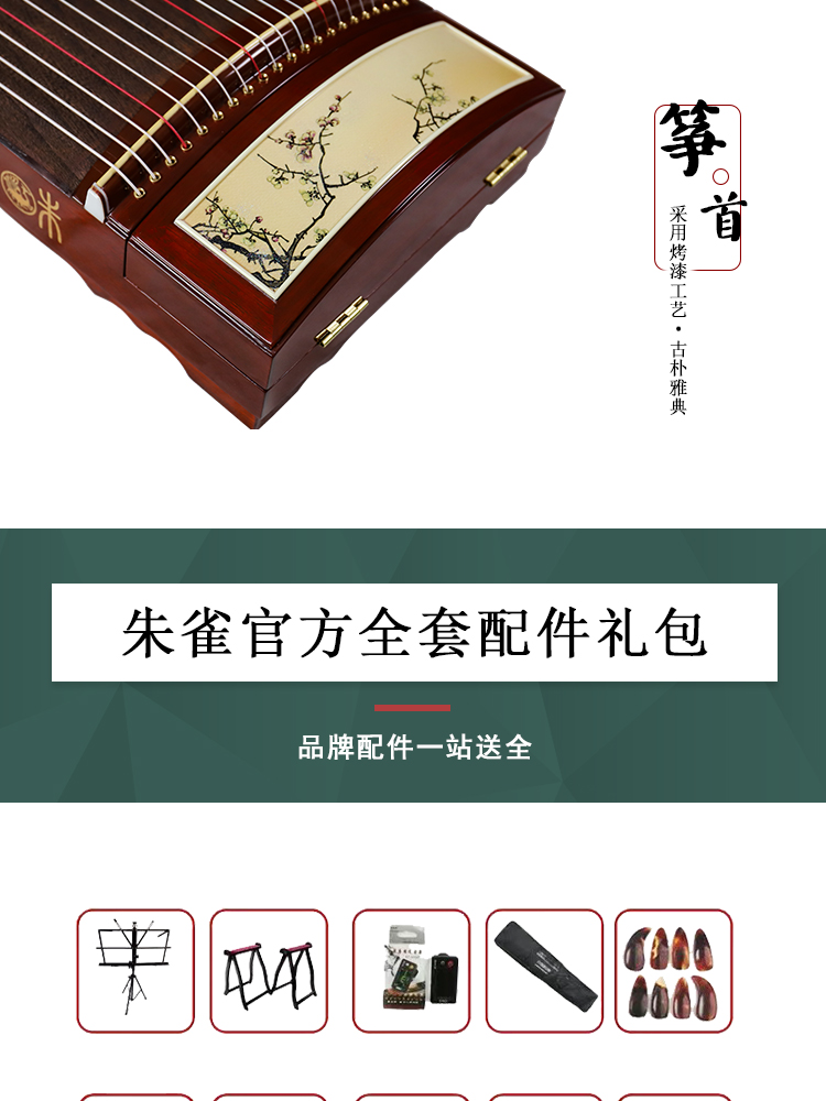 朱雀古筝官方旗舰店演奏实木考级整挖古筝琴烤漆乐器儿童十级推荐