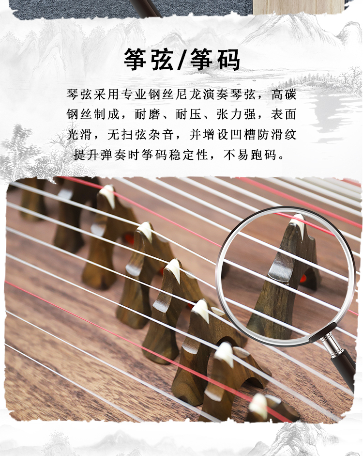 鼎韵古筝905-GY黑檀木高节幽姿漆画考级演奏古筝琴