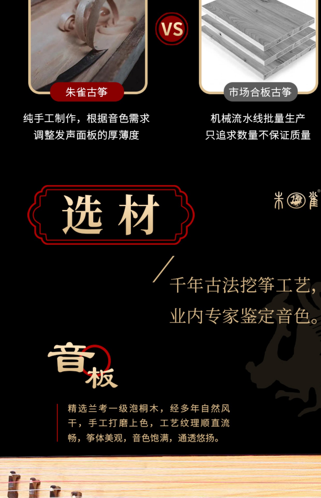 朱雀古筝挖筝07型非洲紫檀刺猬紫檀高级演奏筝精品古筝乐器考级用
