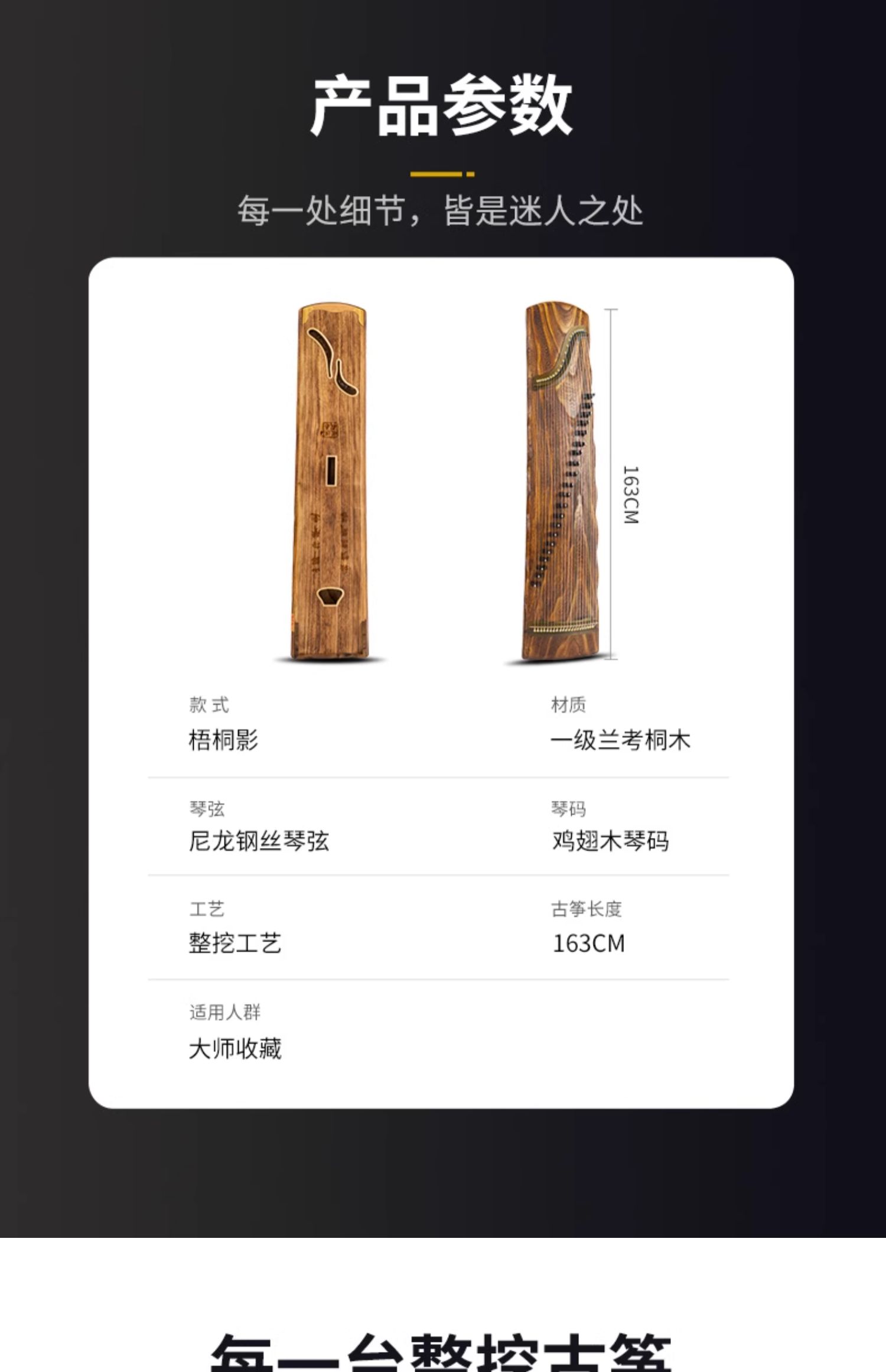商品名称:润扬挖筝梧桐影 收藏级专业古筝琴 实木整挖考级演奏高档扬州古筝