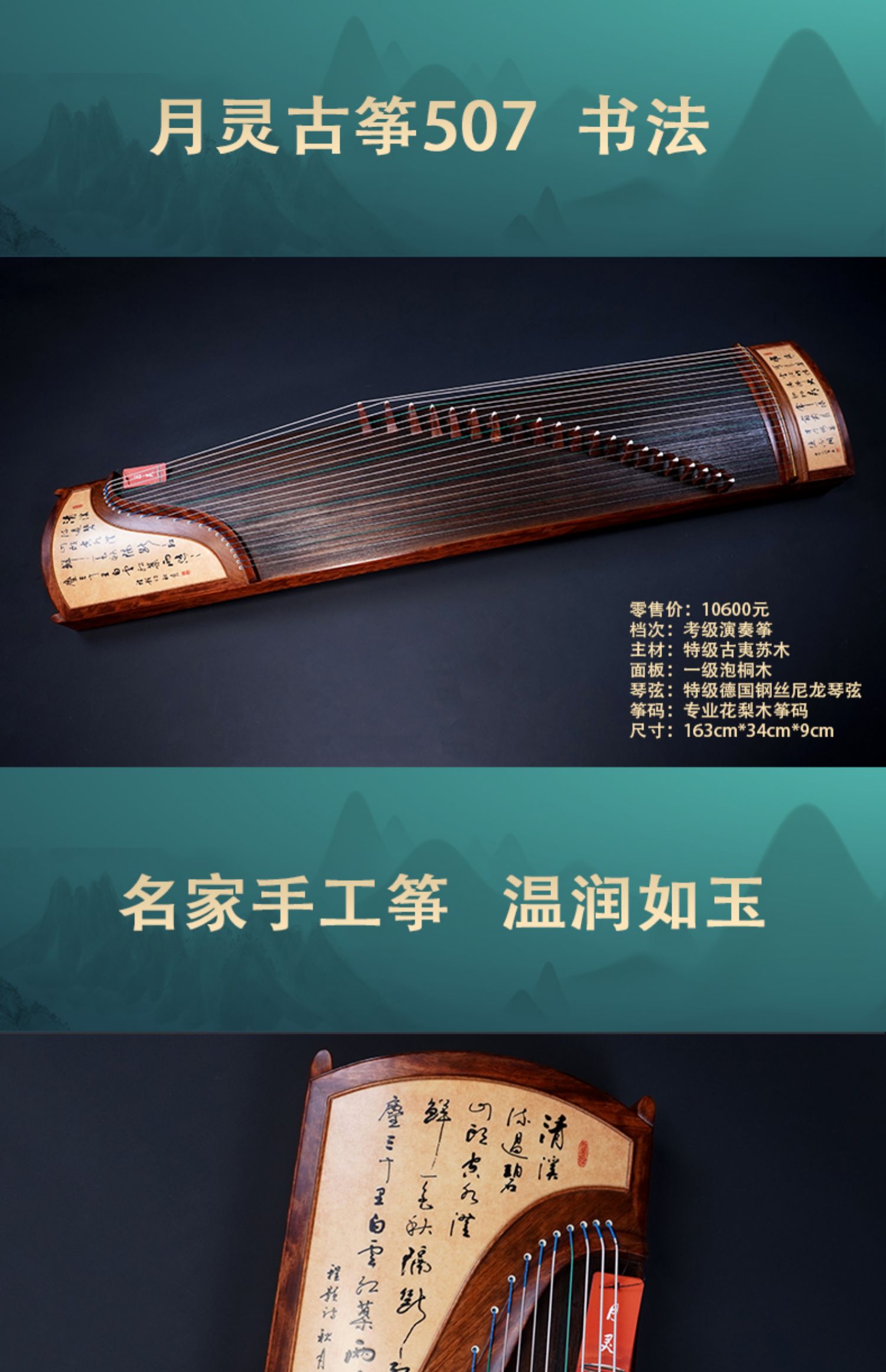 商品名称:【名家手工筝】月灵古筝507书法 专业级演奏 初学者考级入门实木
