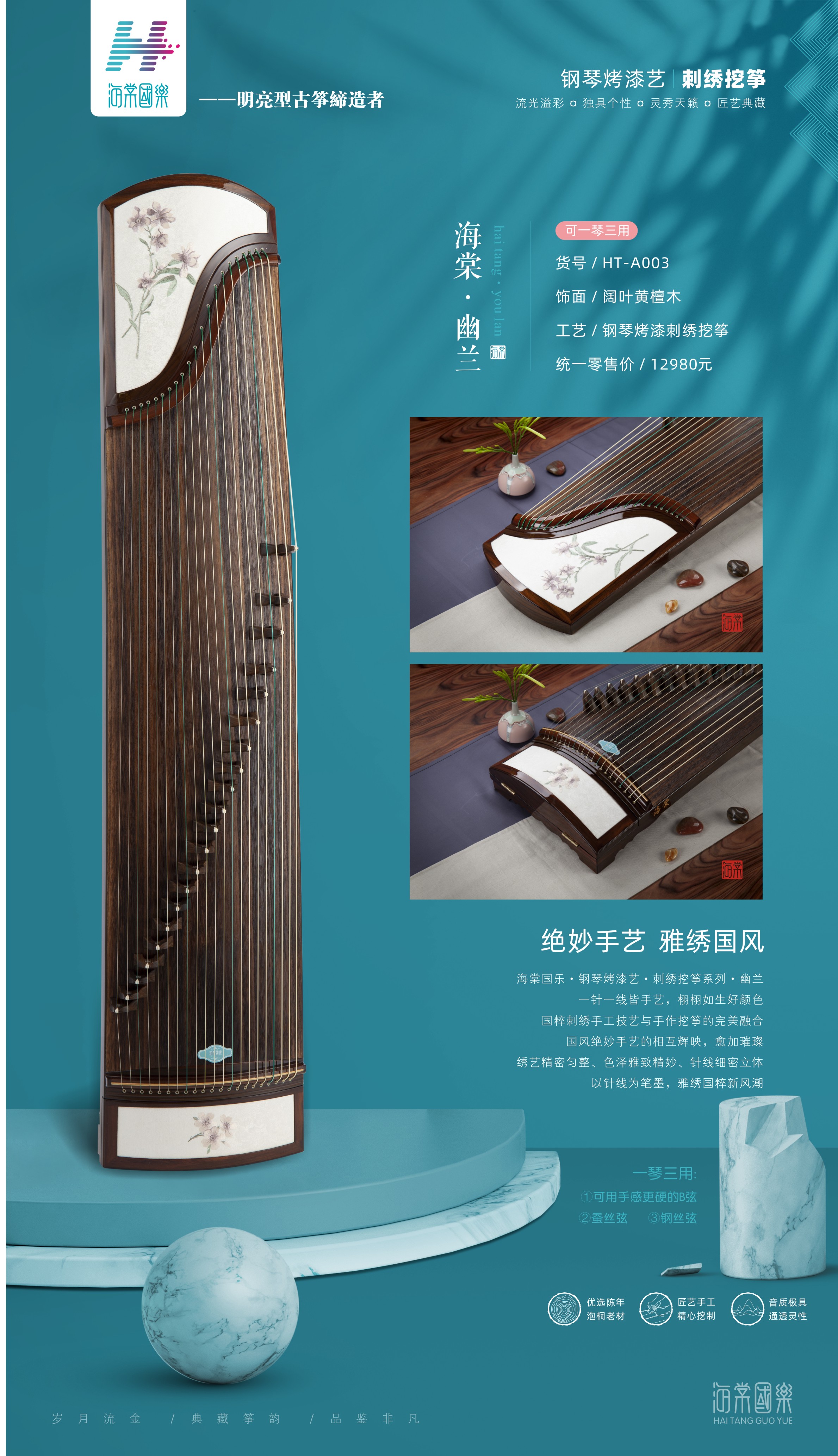海棠国乐古筝幽兰挖筝钢琴烤漆超薄刺绣专业演奏筝