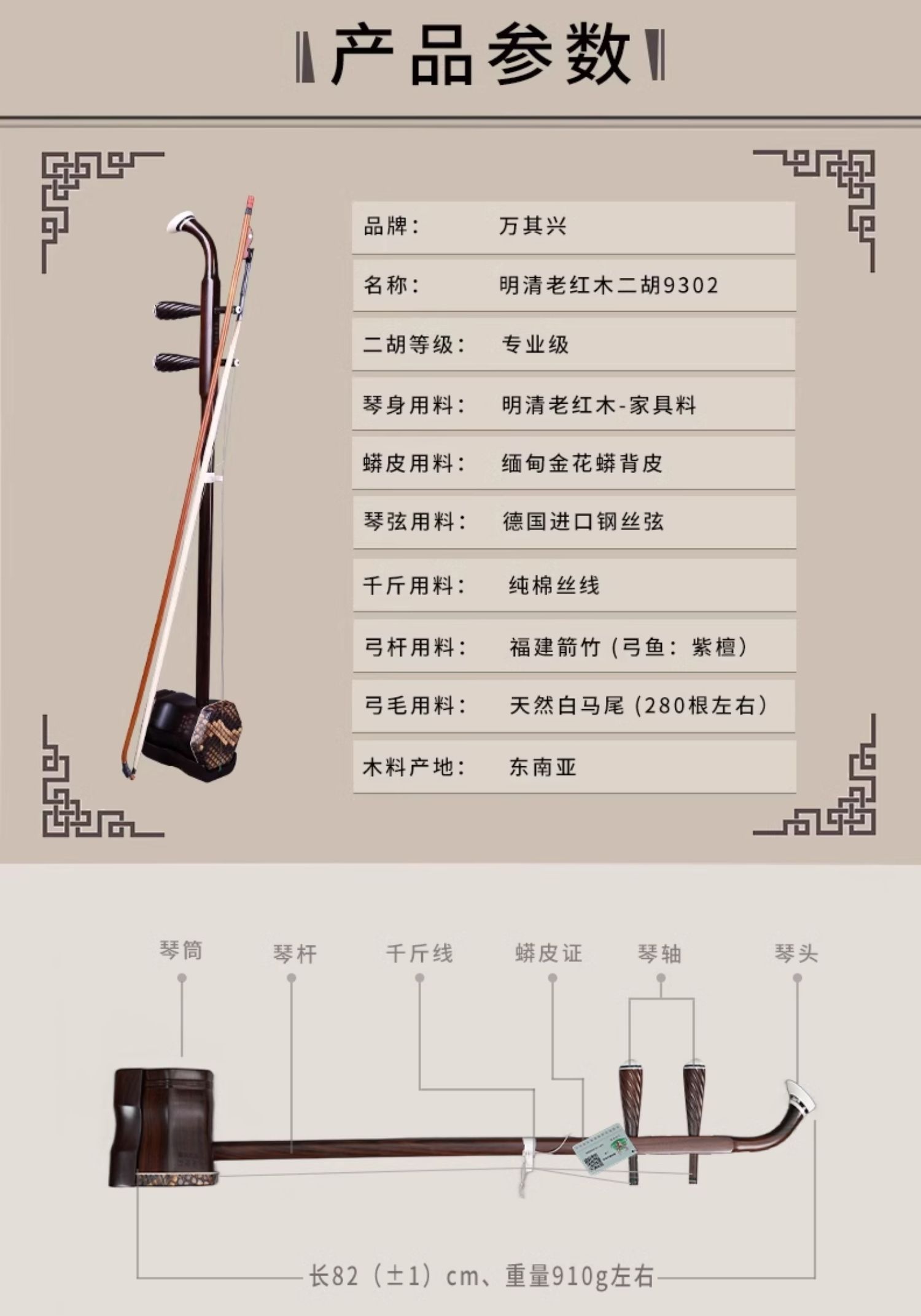 商品名称:万其兴二胡明清旧料老红木高级直销正品演奏专业乐器琴大音量