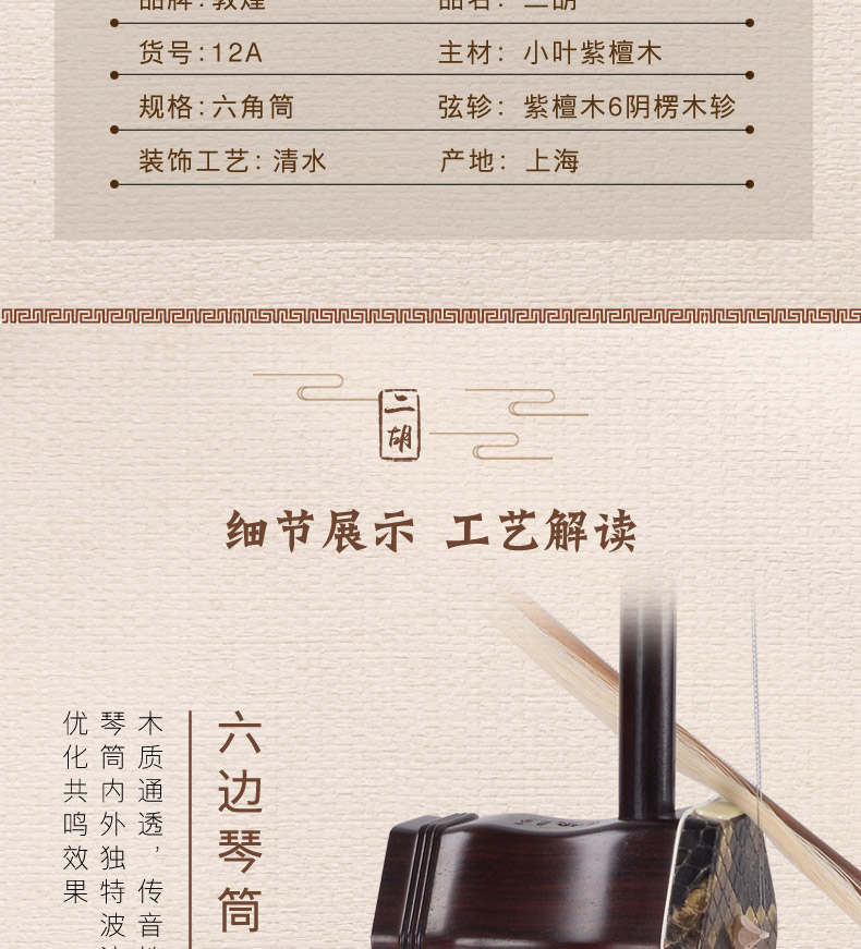 商品名称:敦煌二胡12A小叶紫檀木12a专业考级演奏收藏级六角筒【敦煌专卖店