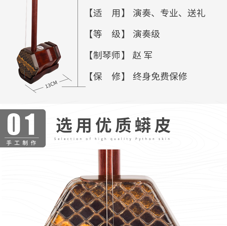 商品名称:赵军二胡老紫檀极品818紫檀全木素杆专业演奏艺考大音量直销