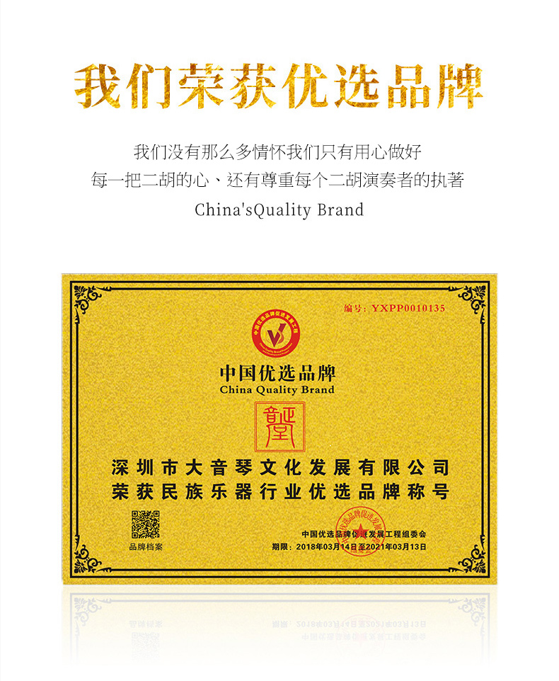 乐器的灵魂是音色,我拉过很多品牌的,就正音堂的手感最喜欢,琴弦不涩,低音浑厚,高音清亮,有金属之声。下次如果需要升级,我会来正音堂的