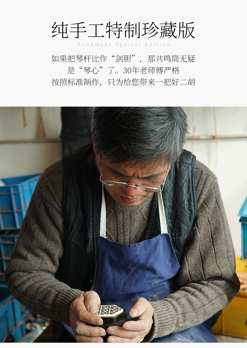 这把二胡外观太惊艳了,琴身色泽温润,光泽度好。配件也都是高品质的,安装牢固。上手试拉,音色圆润,共鸣效果不错,音准也很稳定[强]