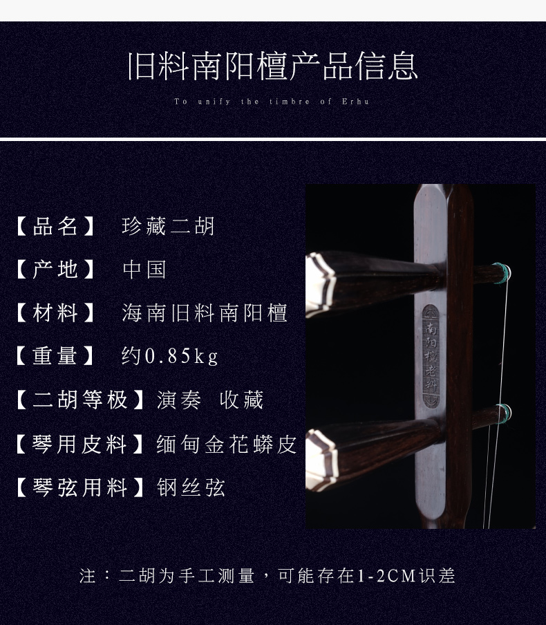 商品名称:胡琴大音量二胡专业演奏收藏高档直销南阳檀老料二胡乐器