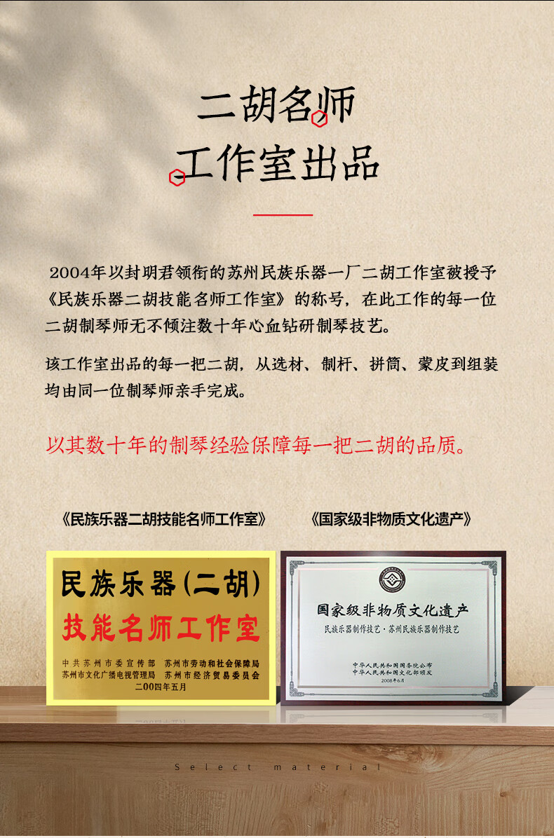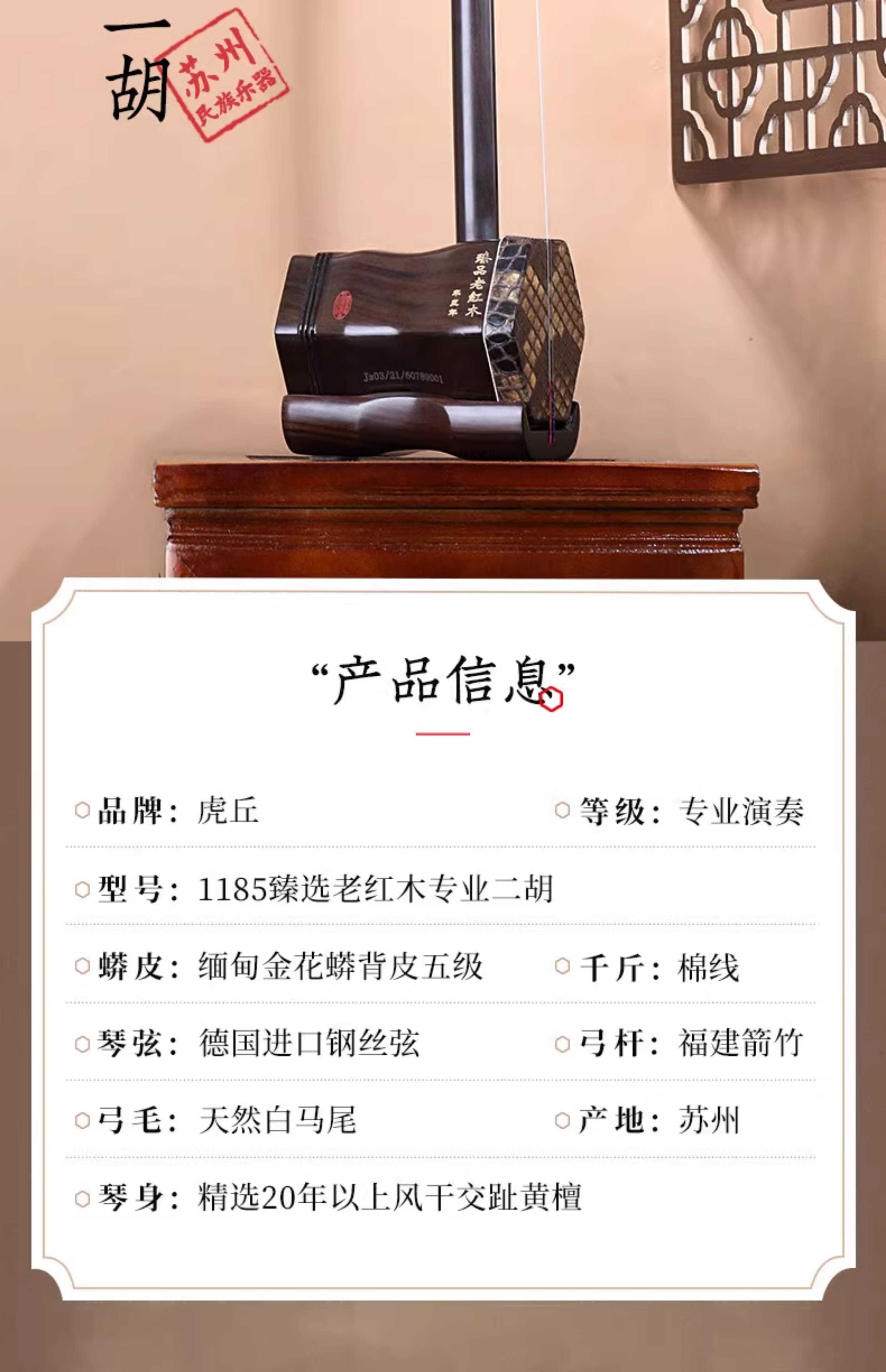 商品名称:虎丘牌二胡考级专业演奏乐器20年老红木高级入门初学苏州精品胡琴