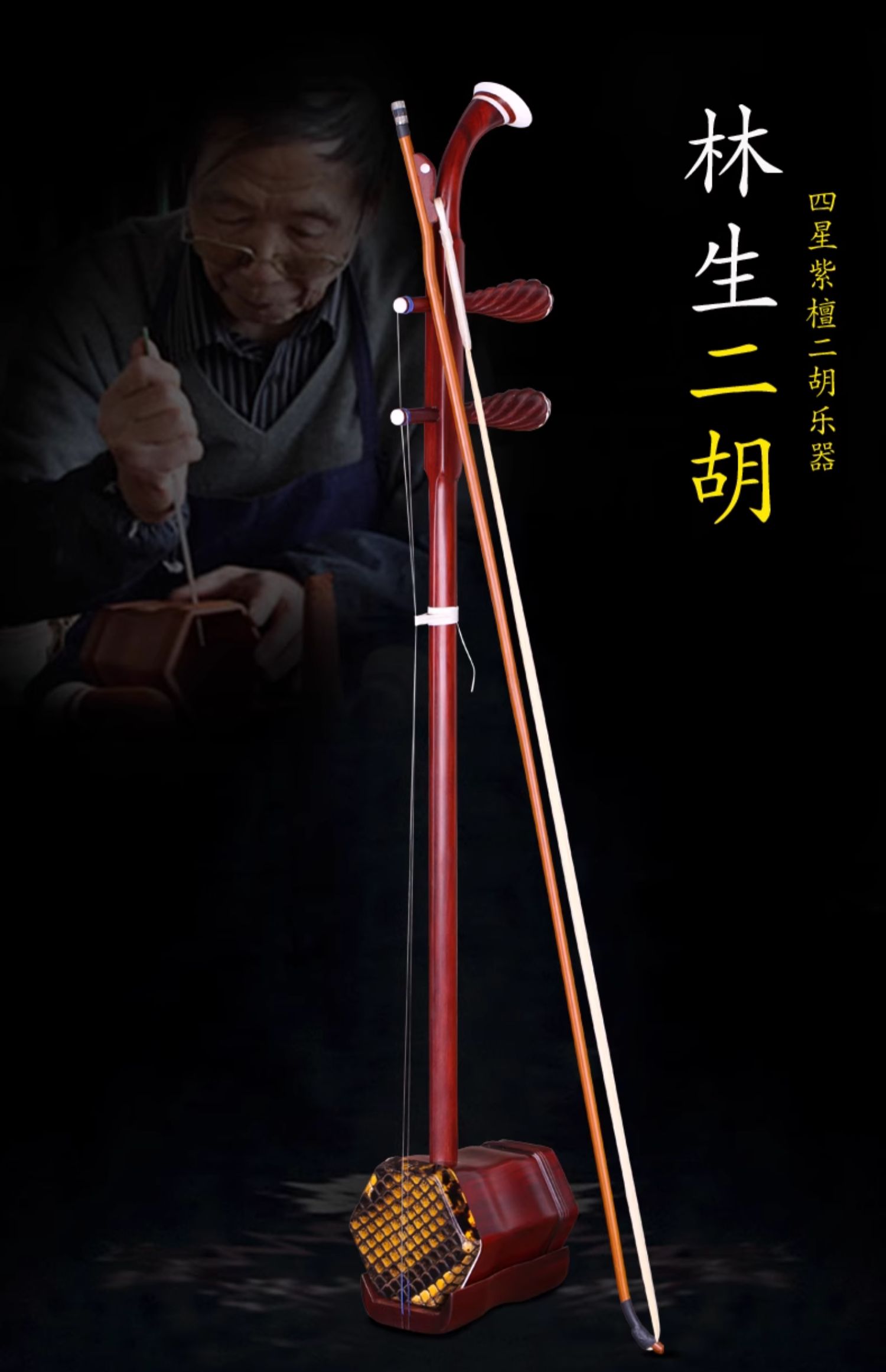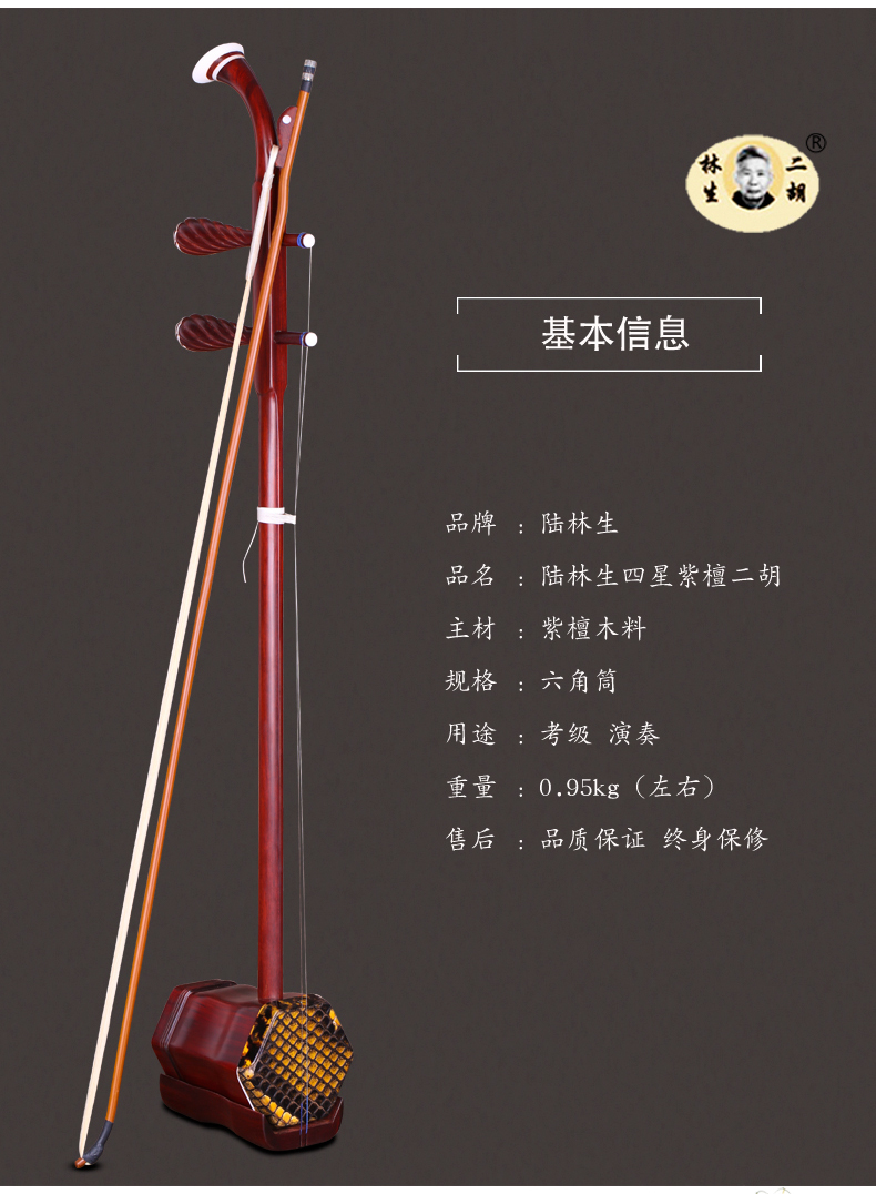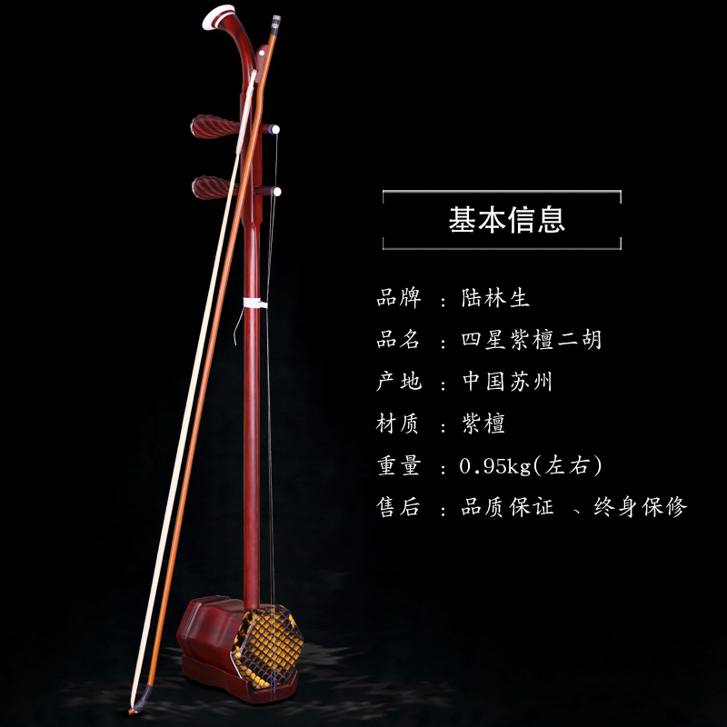 商品名称:陆林生四星非洲紫檀二胡 陆林生二胡 蟒皮可选赠全套配件