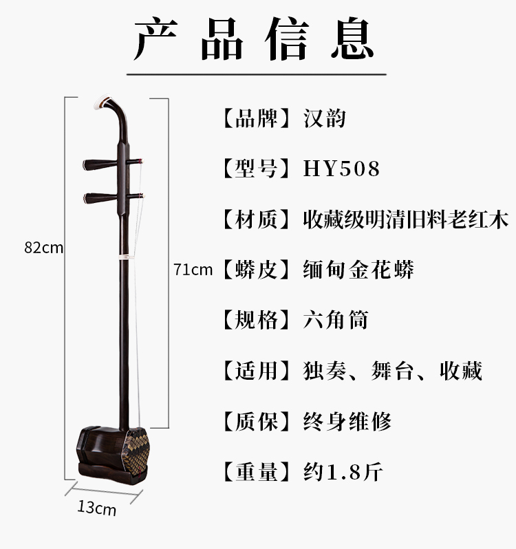 商品名称:汉韵二胡中老年手工制作明清旧料老红木高档收藏专业演奏型号508