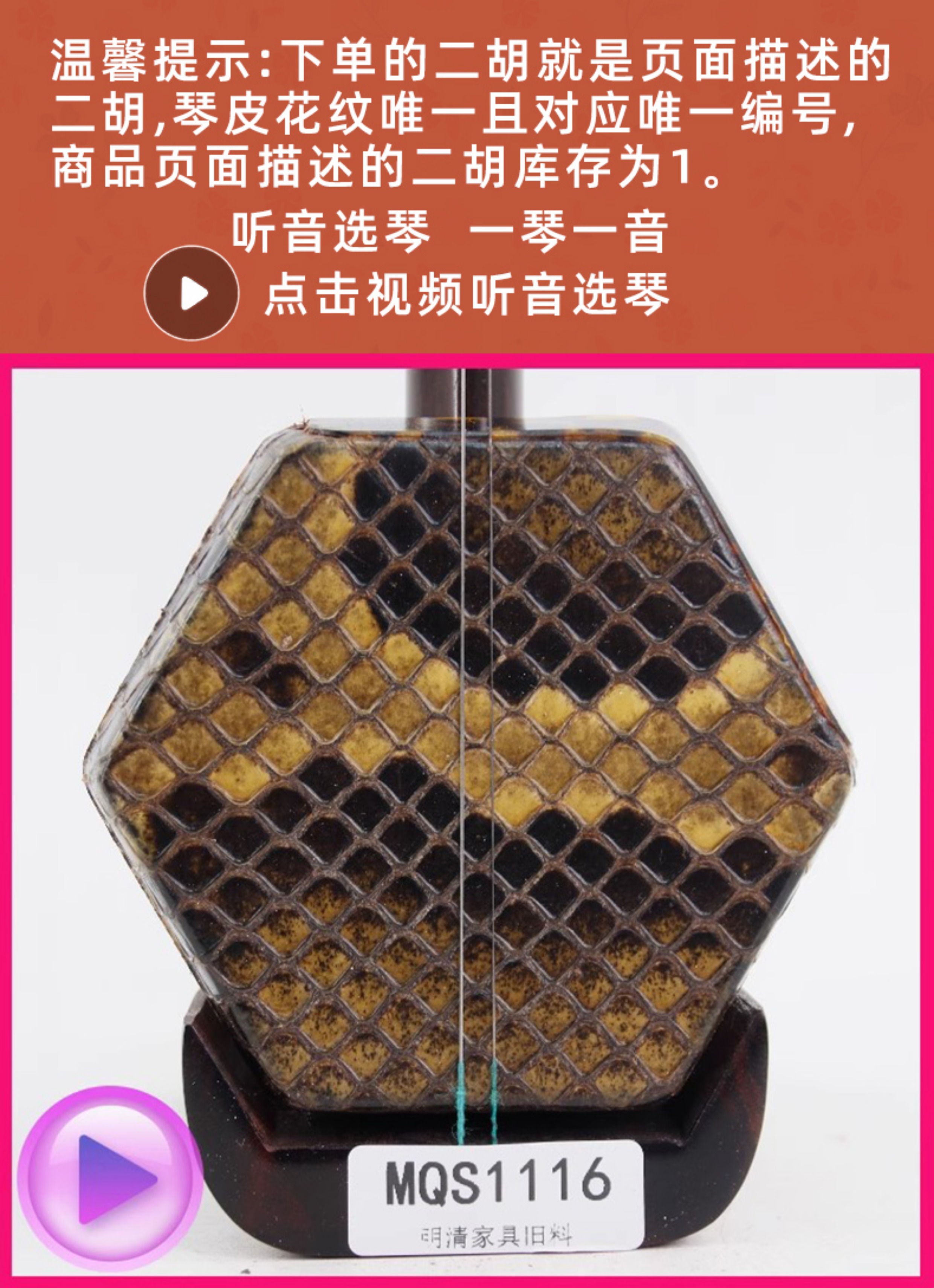 商品名称:【名家专用琴】颂音坊收藏级高端二胡乐器明清老红木音量大音色好