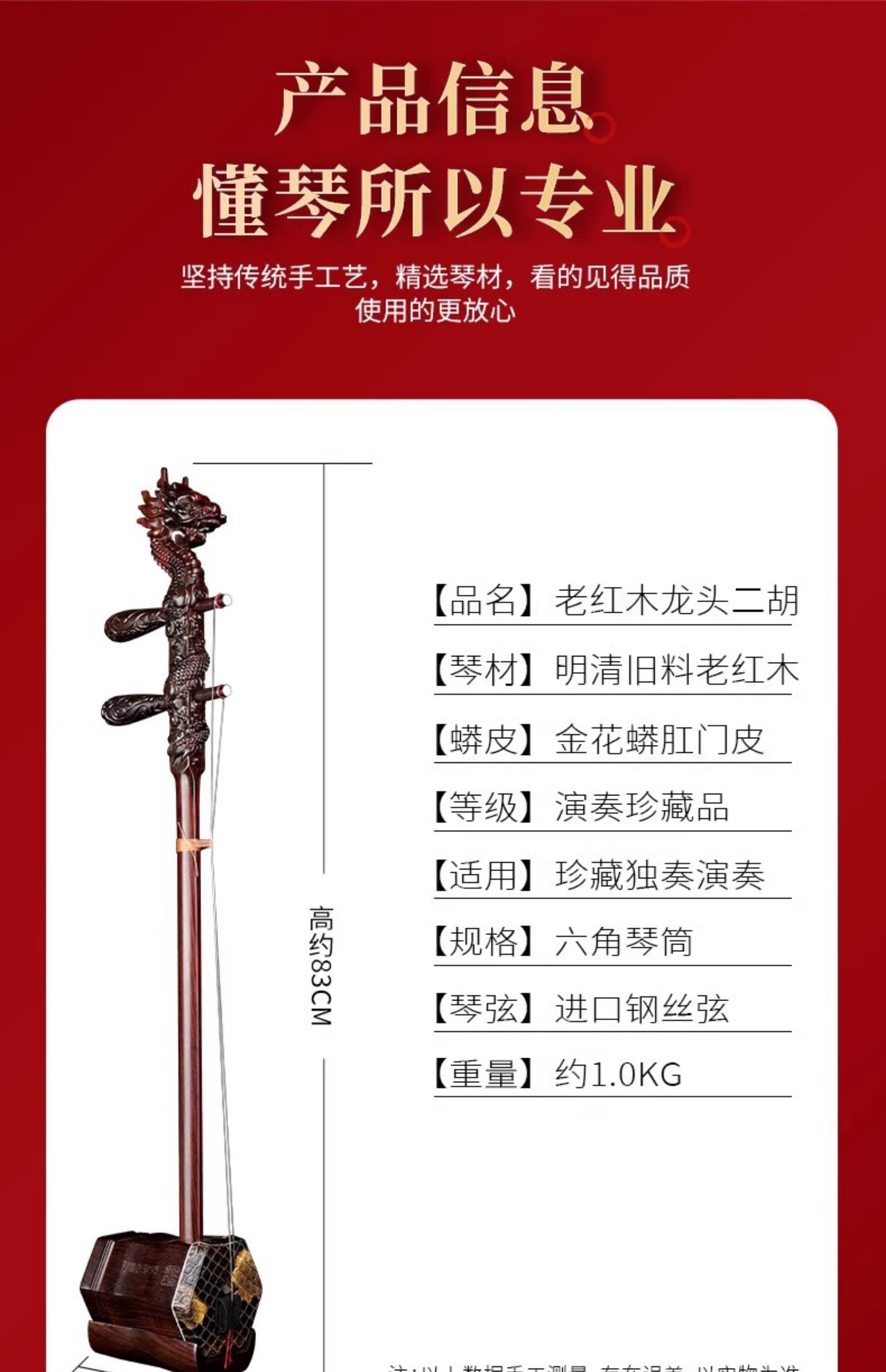 商品名称:正音堂二胡乐器收藏演奏明清旧料老红木龙头直销