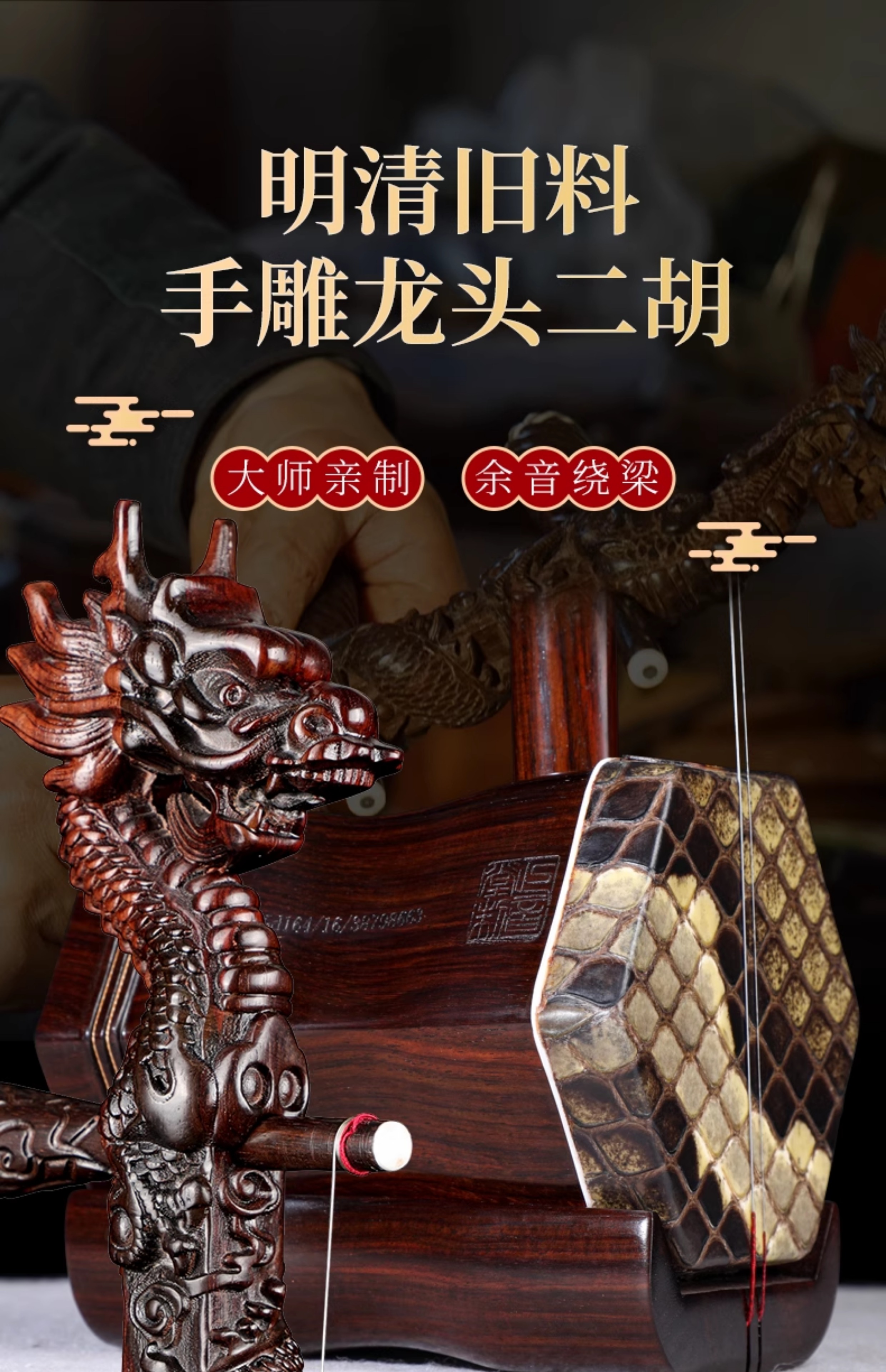 正音堂二胡乐器收藏演奏明清旧料老红木龙头直销