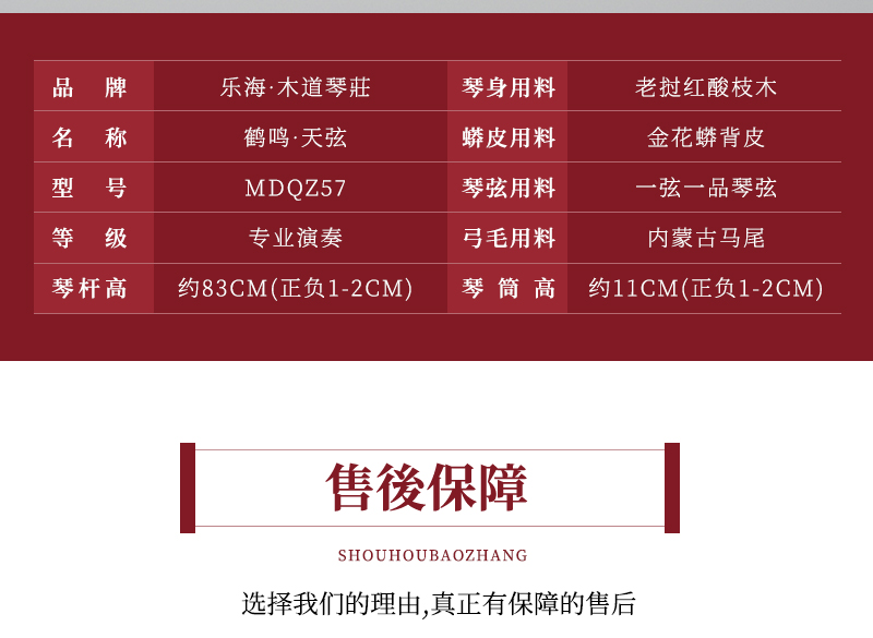 商品名称:乐海 二胡乐器专业演奏级老挝红酸枝木材质木道琴莊鹤鸣MDQZ57