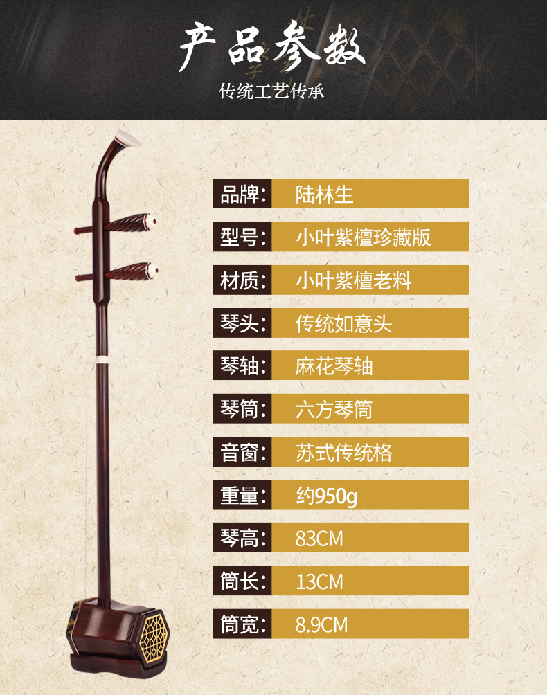 商品名称:陆林生二胡演奏考级五星非洲小叶紫檀专业独奏型收藏乐器直销