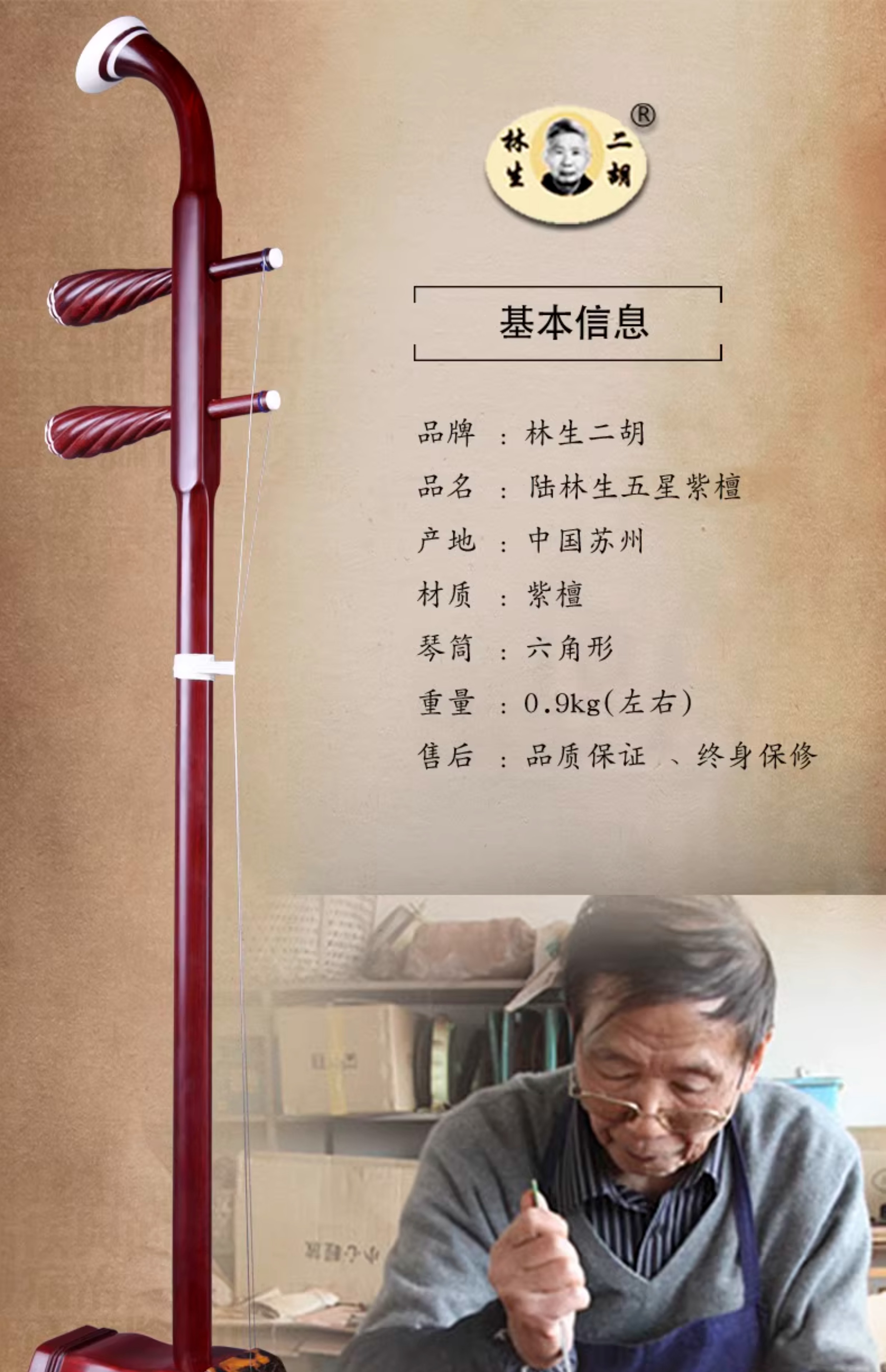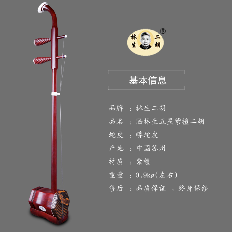 商品名称:陆林生五星紫檀二胡 专业演奏二胡 非洲小叶紫檀制作