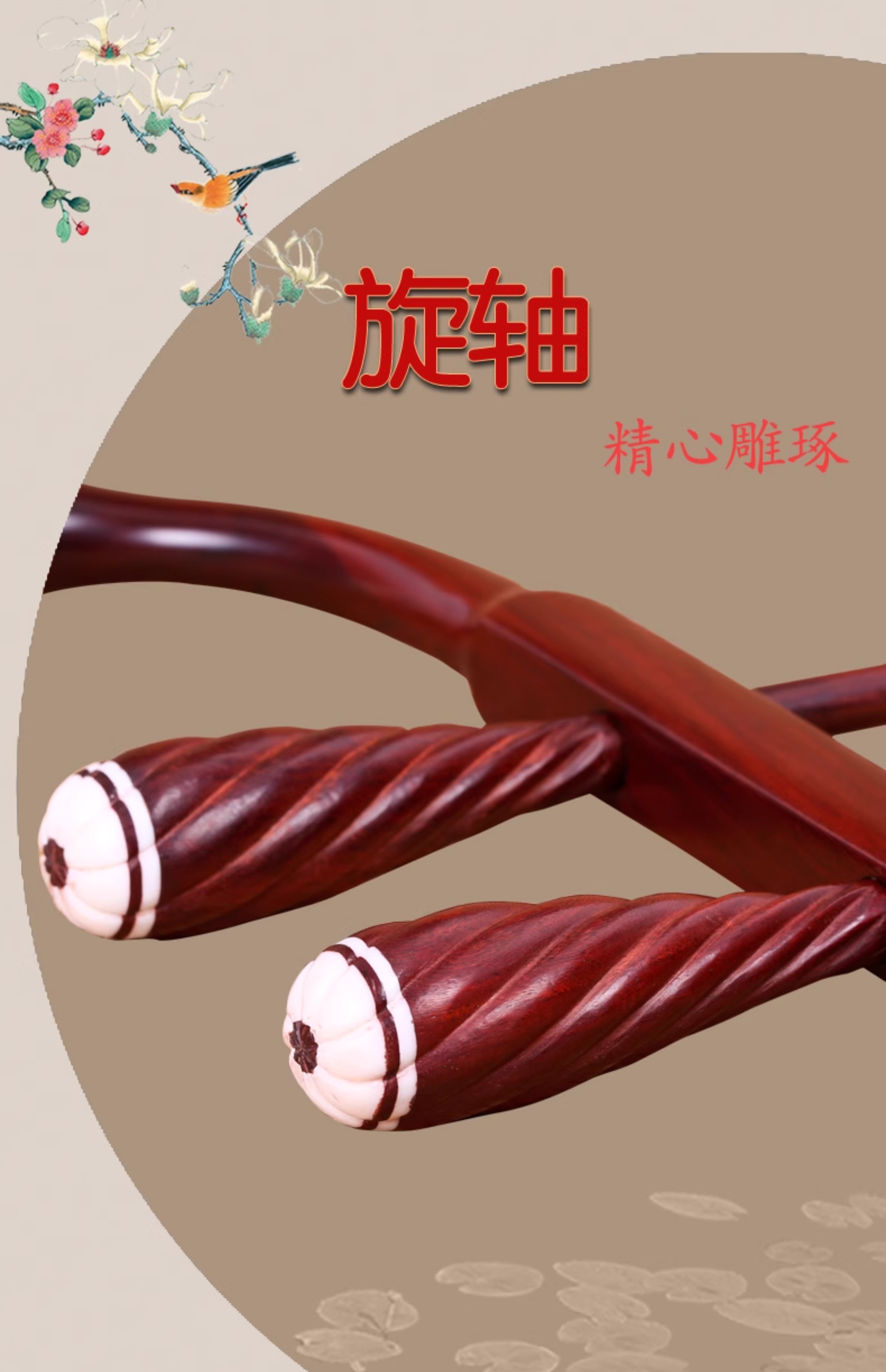乐海 琵琶乐器大果紫檀木材质原木抛光木轴木相花开富贵头饰9119
