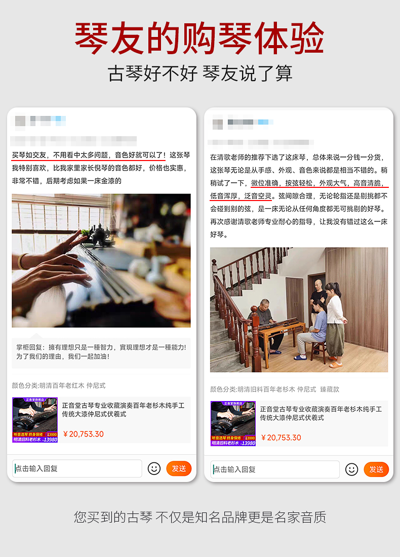 商品名称:正音堂古琴专业收藏演奏百年老杉木纯手工传统大漆仲尼式伏羲式