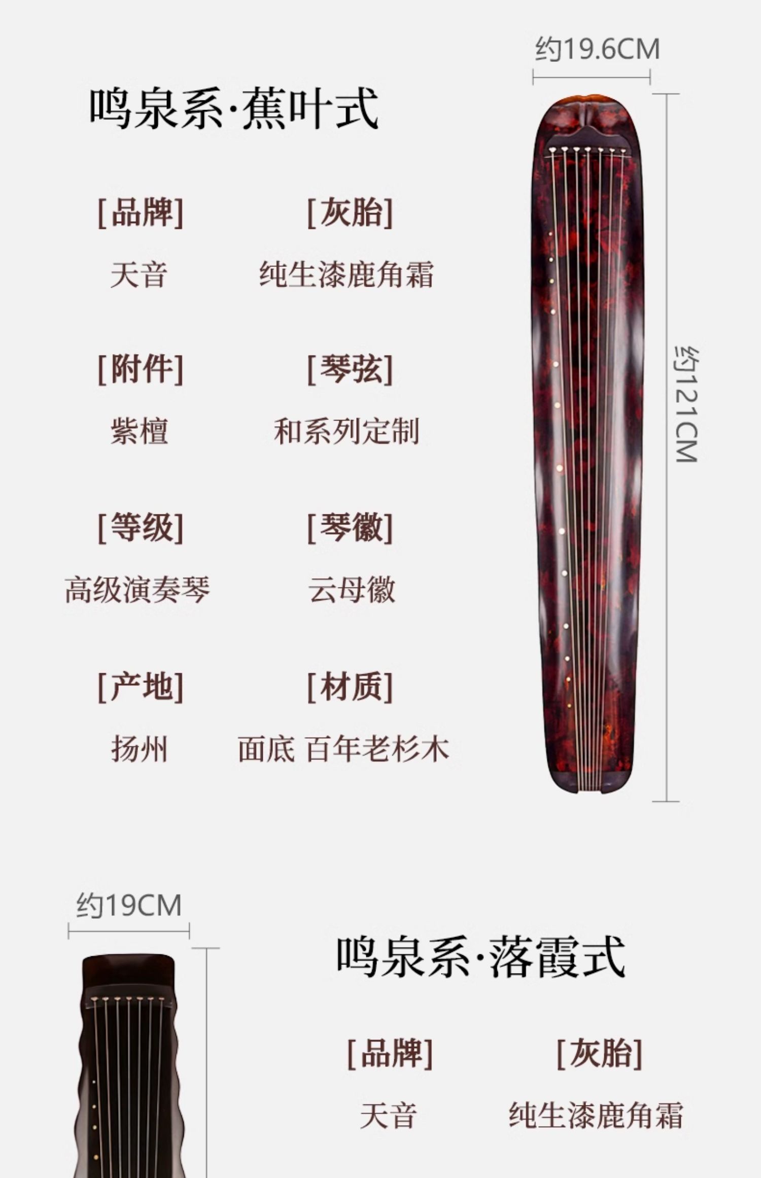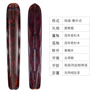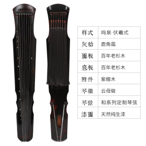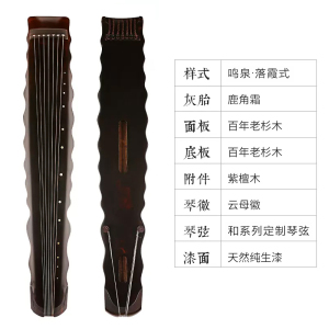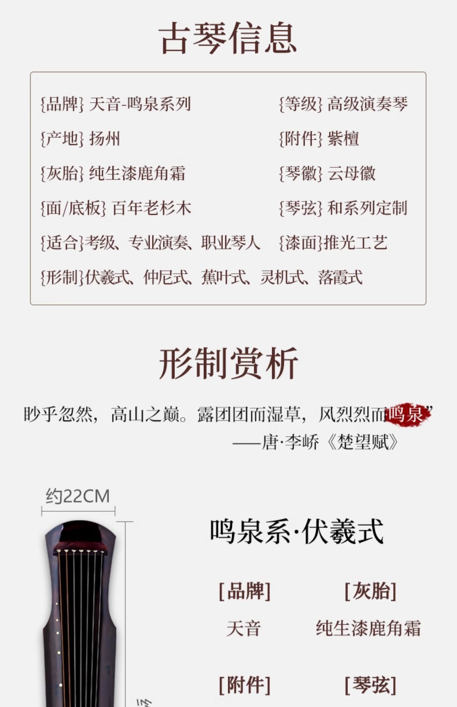 商品名称:天音古琴鸣泉系列伏羲式仲尼式院校专用纯手工老杉木生漆专业收藏