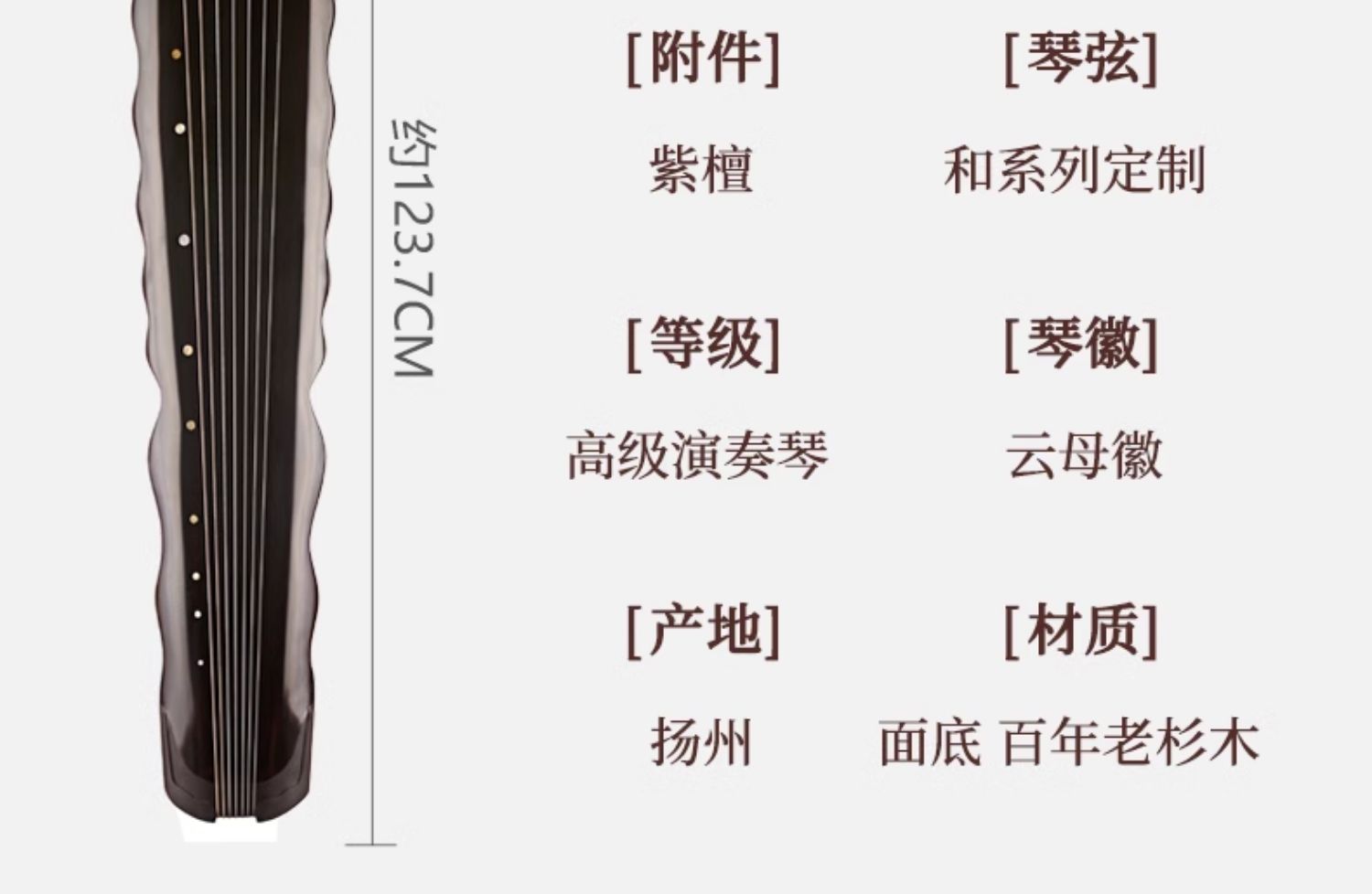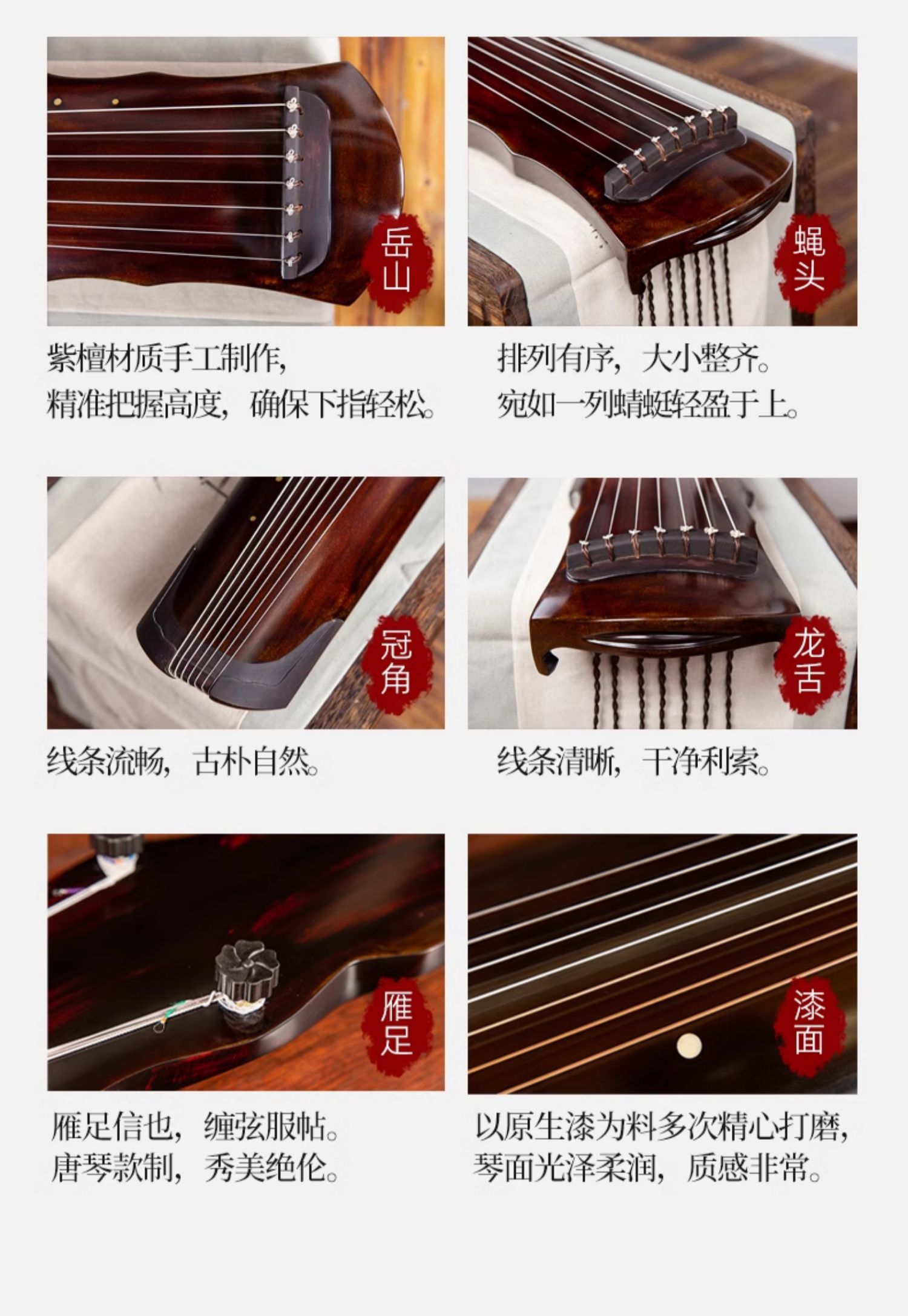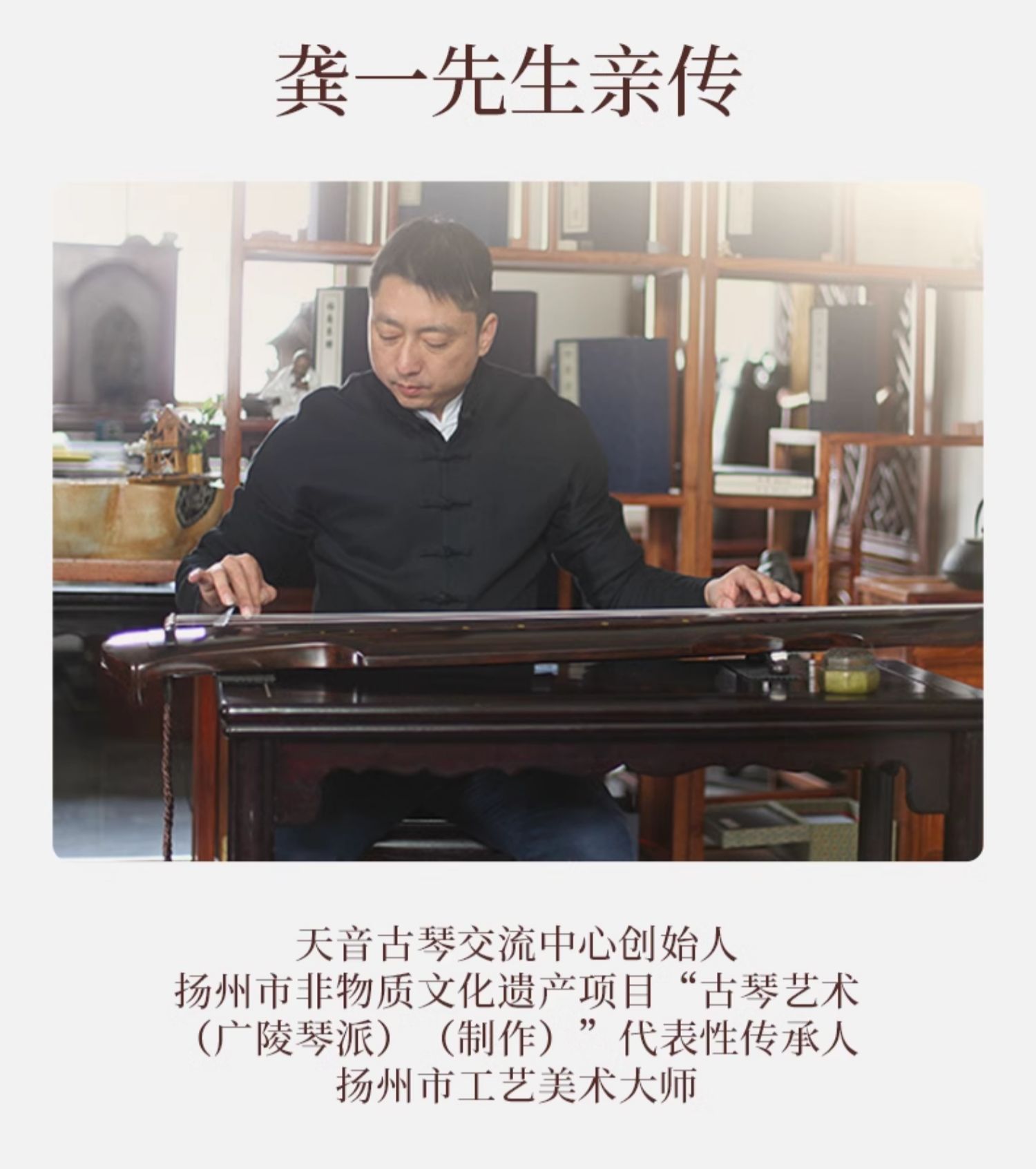 商品名称:天音古琴鸣泉系列伏羲式仲尼式院校专用纯手工老杉木生漆专业收藏