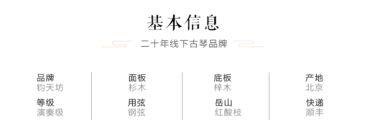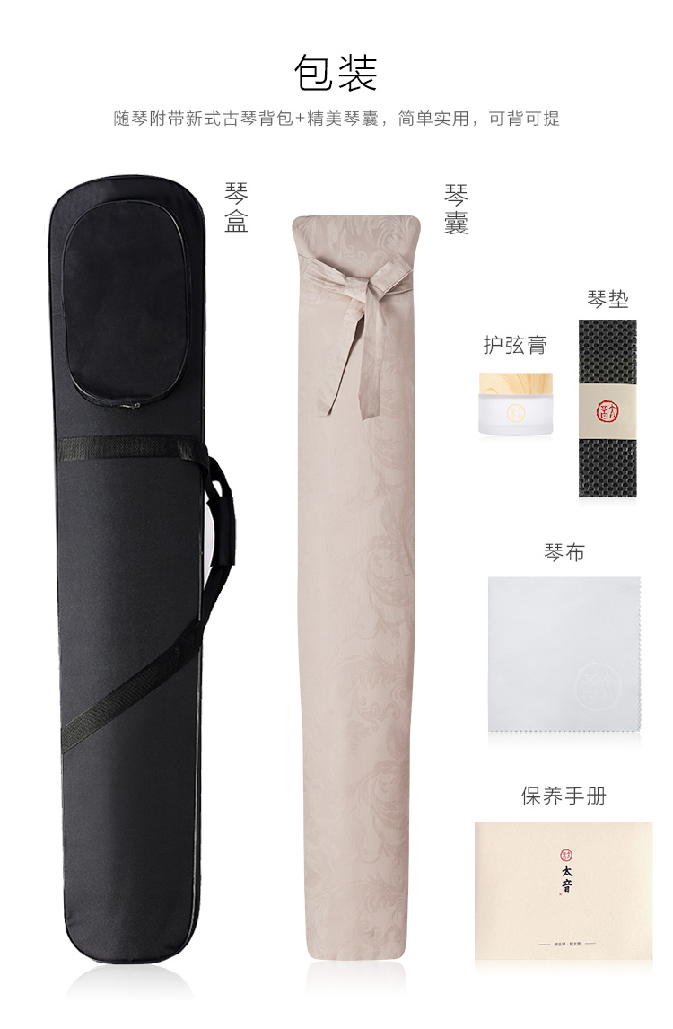 商品名称:太音琴社丨款钧天坊王鹏绿绮式初学演奏级纯手工七弦古琴和露