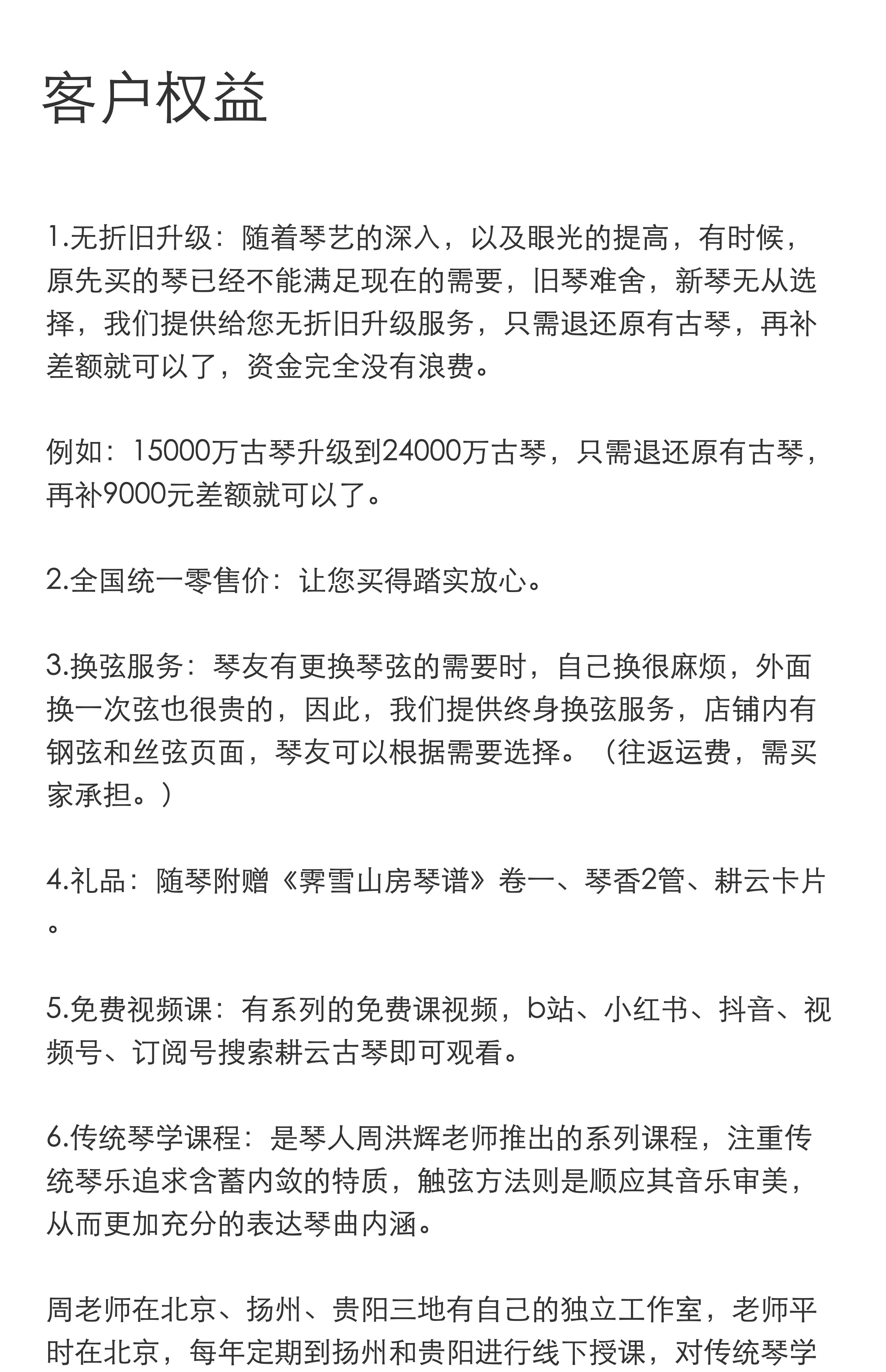 商品名称:耕云古琴 春夏秋冬系列 初学者专业演奏 琴人周洪辉把控品质