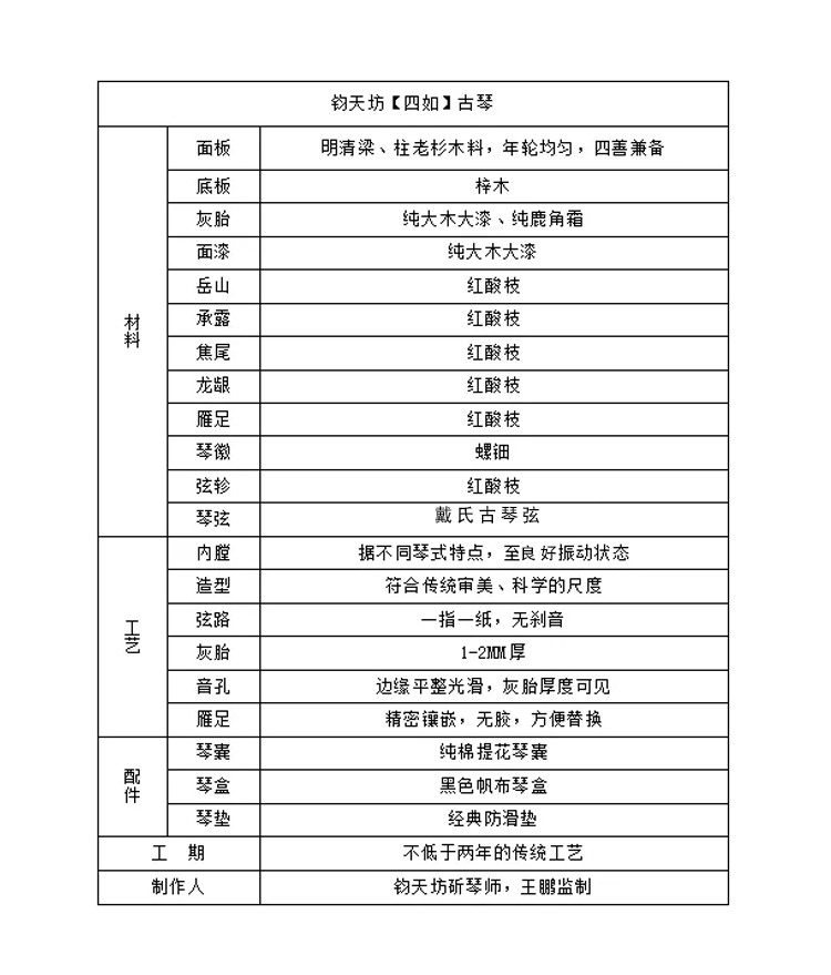 商品名称:翕如【和露临风】钧天坊四如古琴王鹏监制演奏级老杉木伏羲仲尼等