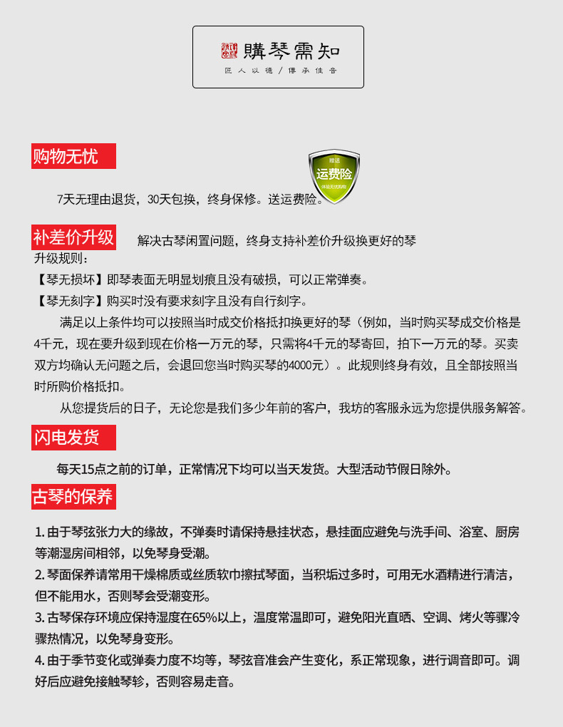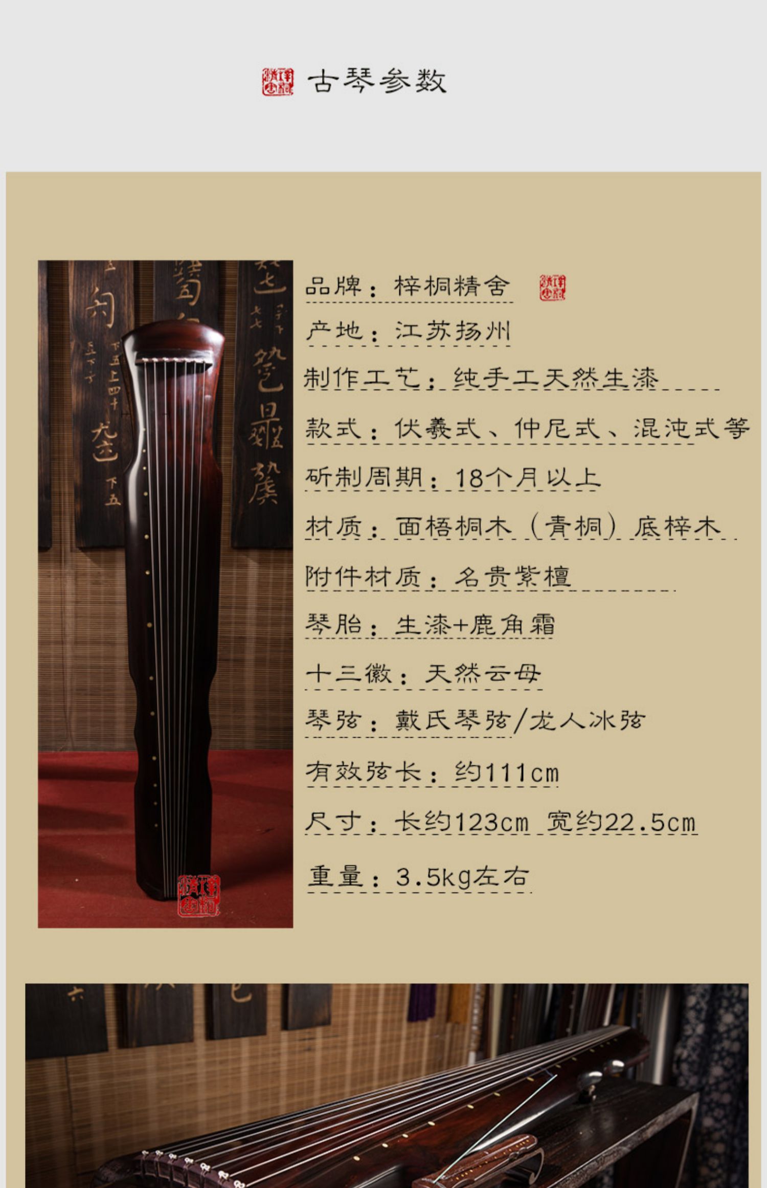 商品名称:梓桐精舍古琴乐器青桐梧桐木伏羲式仲尼式混沌式生漆演奏古琴顺丰