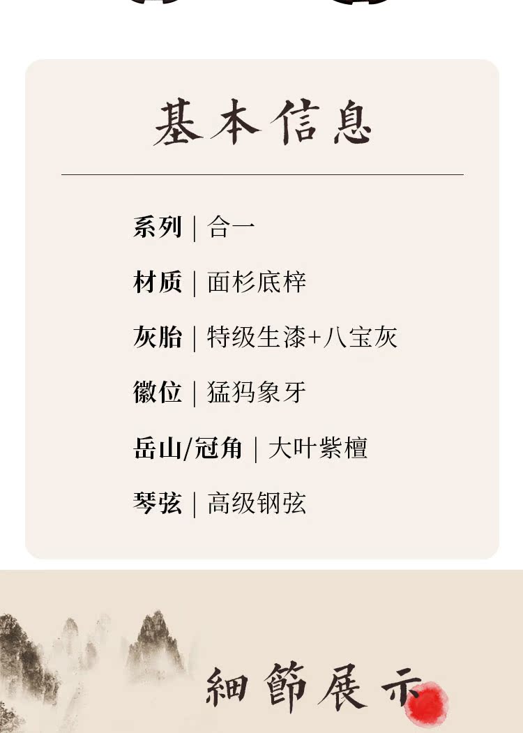 商品名称:【预售】先河古琴川桐八宝灰演奏级专用精斫专业七弦琴丨合一